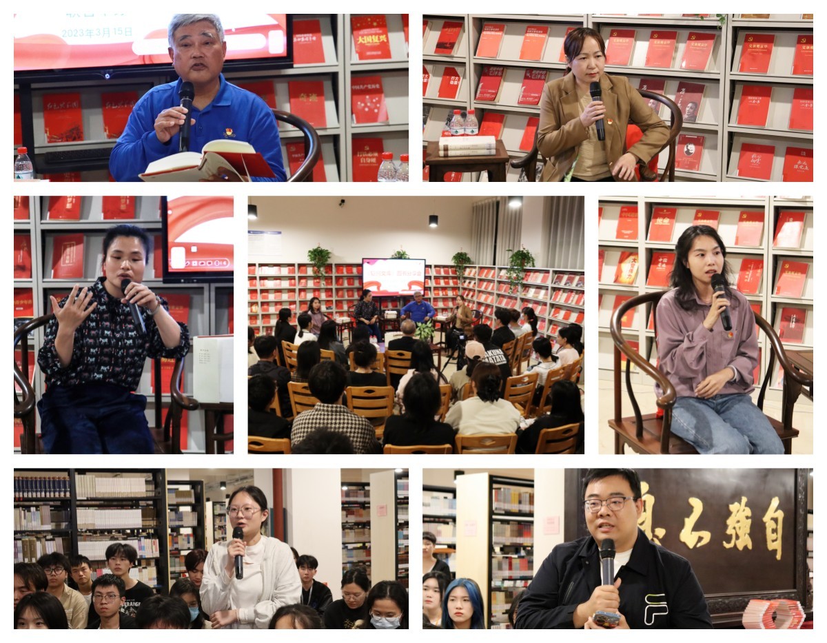 3月15日晚上7点30分,图书馆联合马克思主义学院在西校区图书馆三楼社科书库共同举办了一场《复兴文库》图书分享会,分享会由图书馆馆长王作先主持,特别邀请马克思主义学院院长姜献生教授、副院长罗秋梅副教授、优秀青年教师王佳碧老师作分享嘉宾。参会师生认真聆听各位嘉宾的分享并积极与嘉宾交流,气氛浓厚热烈,分享会在师生们经久不息的掌声中圆满结束! (张新玲摄)