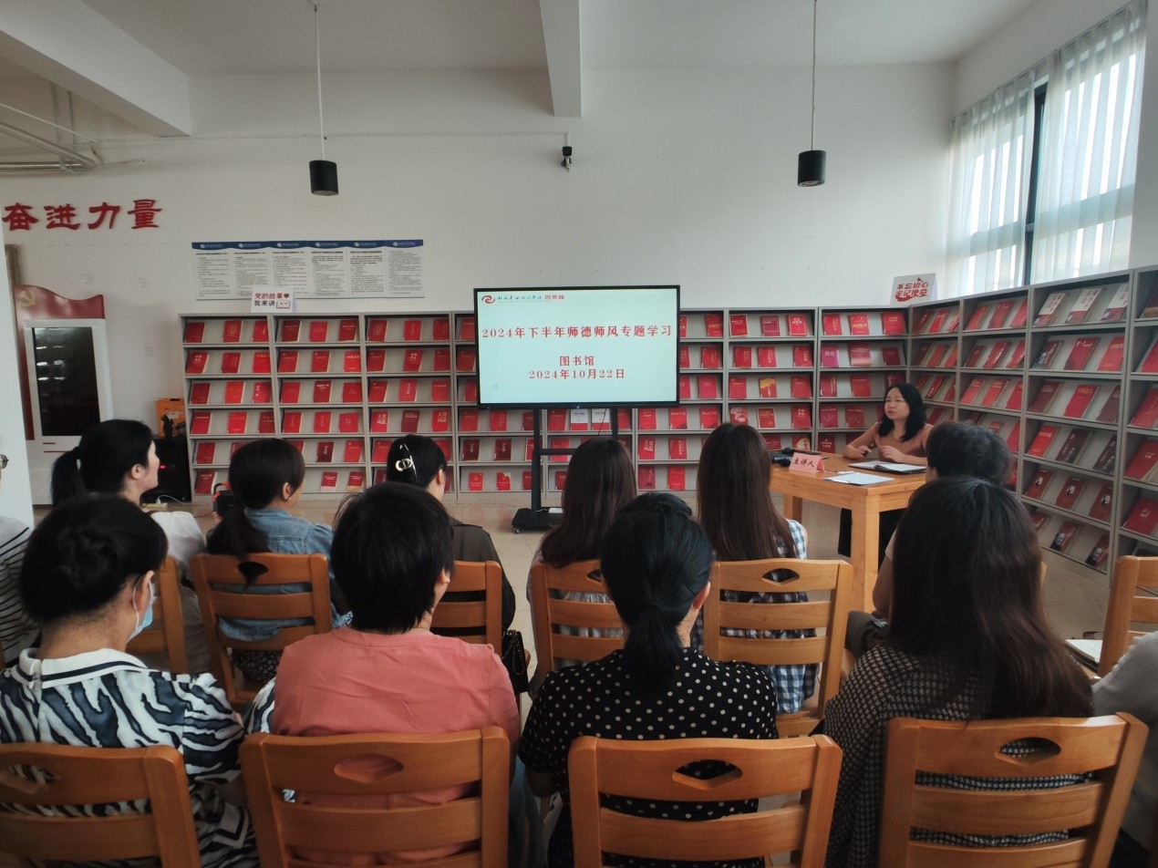 为认真学习贯彻党的二十大精神,落实学校2024年下半年师德师风专题学习活动,10月22日上午8:00,图书馆在三楼阅览室组织全体教职员工开展师德师风专题学习,进一步提高教职员工的思想政治素质和师德师风水平,提升图书馆服务育人层次。