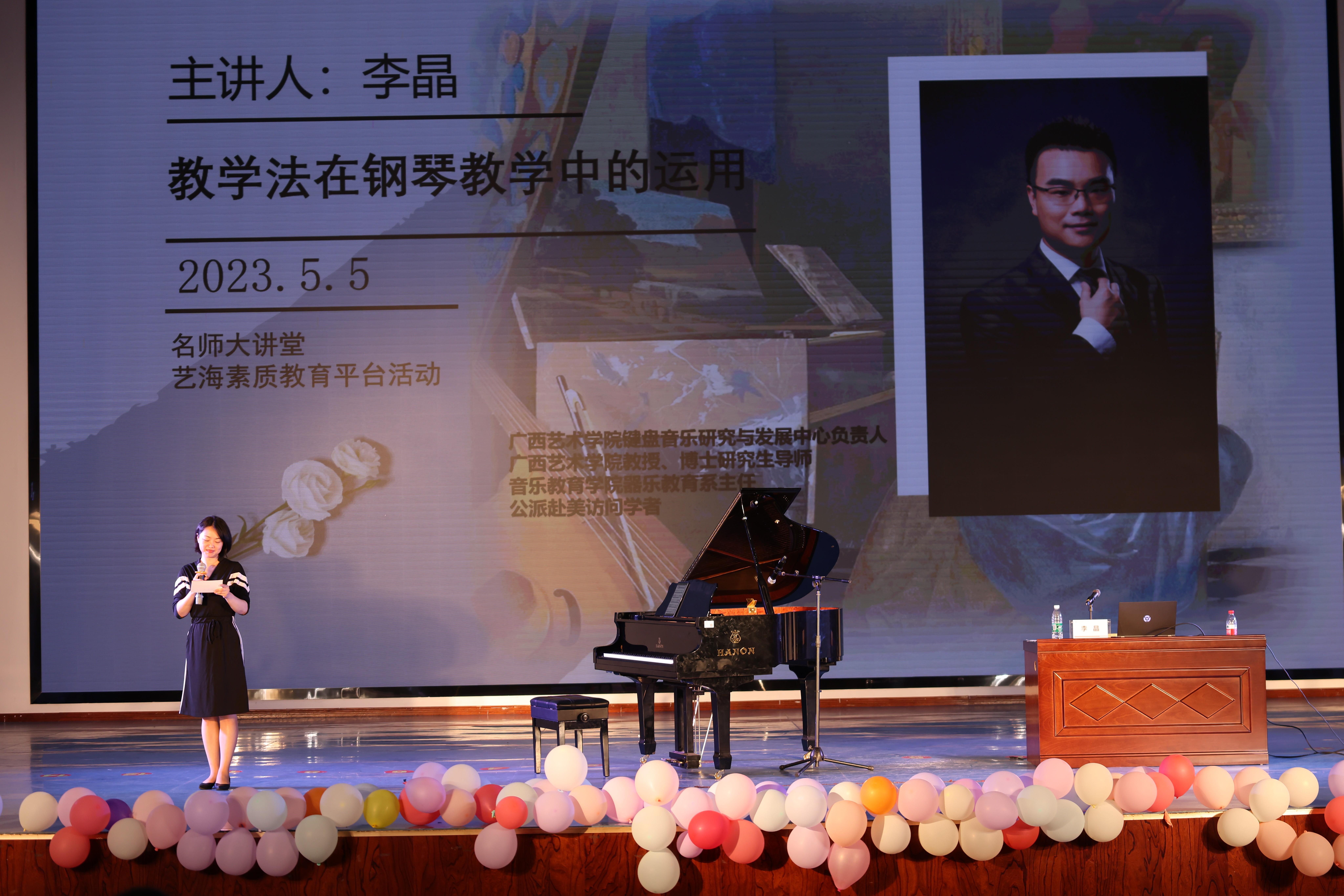 5月5日,广西艺术学院键盘音乐研究与发展中心负责人,音乐教育学院器乐教育系主任李晶教授受邀莅临我院进行交流和讲座。李晶教授与我院部分教师进行了交流座谈,并参加了名师大讲堂—《教学法在钢琴教学中的运用》专题授课。
