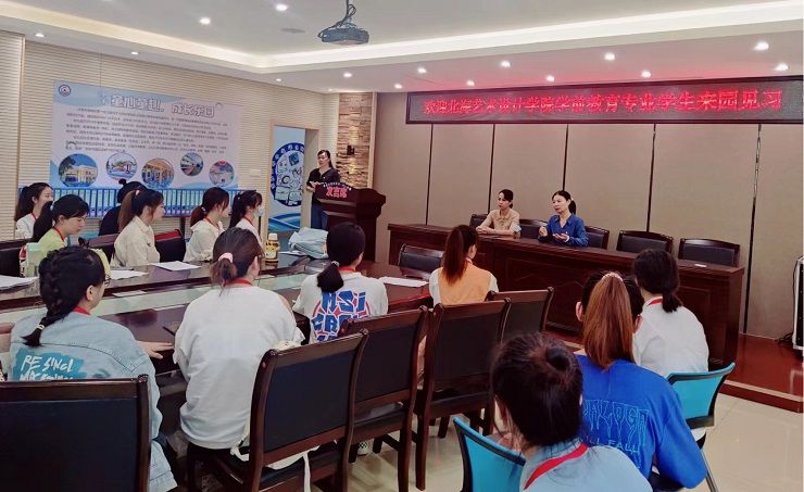 见习第一天,银海区第二幼儿园刘园长、海城区第一幼儿园罗园长分别对见习生的到来表示热烈欢迎,同时对幼儿园基本情况工作日常和注意事项进行了培训指导对全体见习提出学习的要求:多听、多看、多问、多学习的态度,积极融入教育见习当中,祝愿见习生在本次教育见习能够有所收获