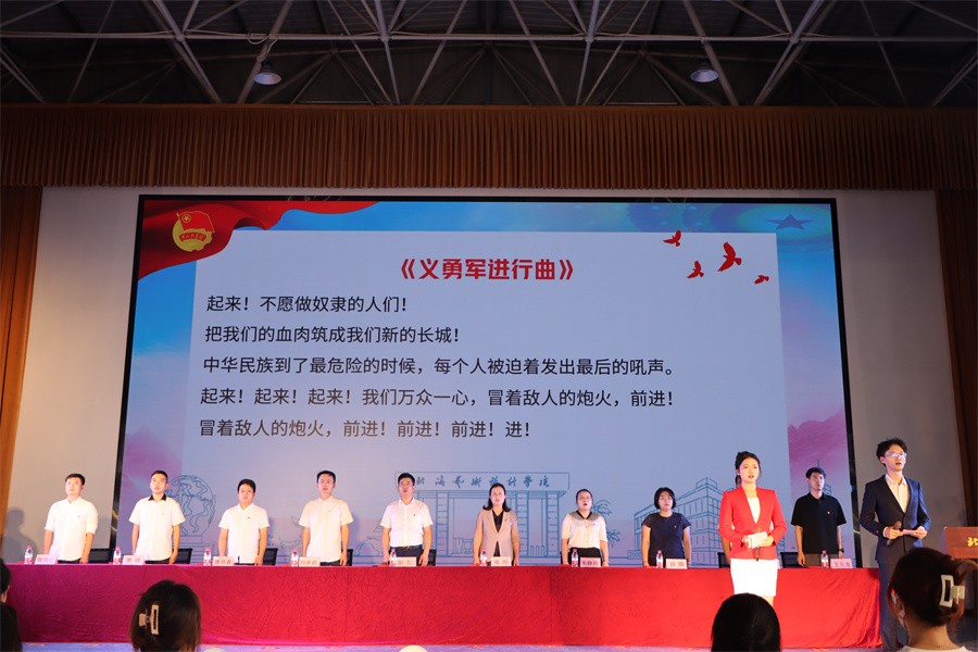 团委书记唐良春同志带领新老团员进行入团宣誓仪式,铿锵有力的誓词在礼堂中久久回荡,这不仅仅是简单的誓言,更是砥砺奋斗的决心。希望每一位团员在未来能够不负胸前的那一枚团徽,成为一个忠于国家、忠于党、忠于人民的优秀团员。