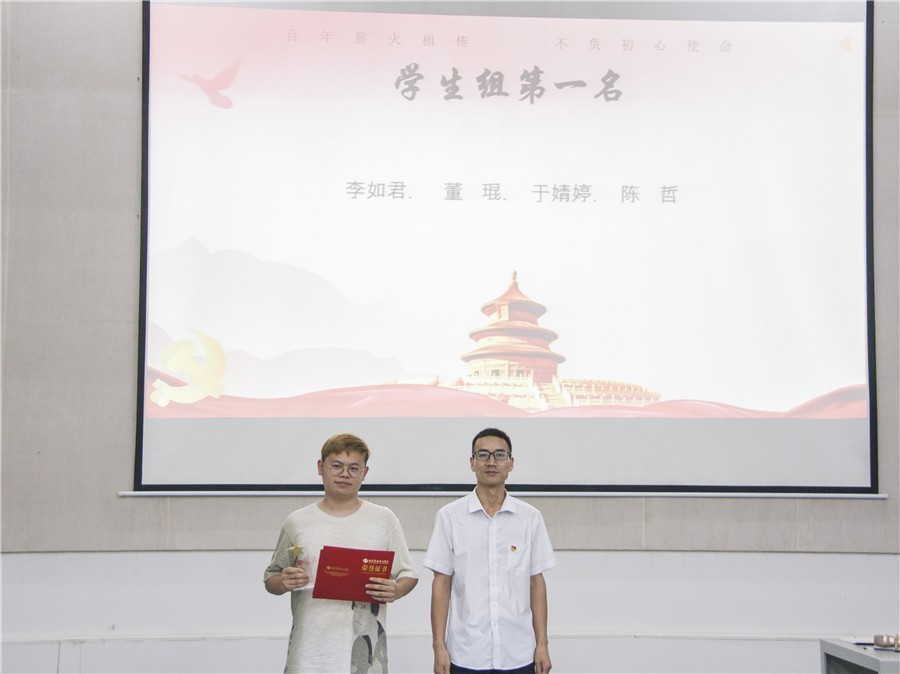5月28日,党史知识竞赛颁奖典礼在公德楼107如期举行。学校党委委员、环艺学院常务副院长王照伟 ,环艺学院党总支书记、副院长王文刚,环艺学院副院长唐道明,环艺学院副院长蔡世伟,环艺学院第一支部书记顾凯旋,环艺学院第二支部书记聂明丽等学院领导,以及环艺学院、服装学院、教育学院、美术学院分团委负责人出席典礼。