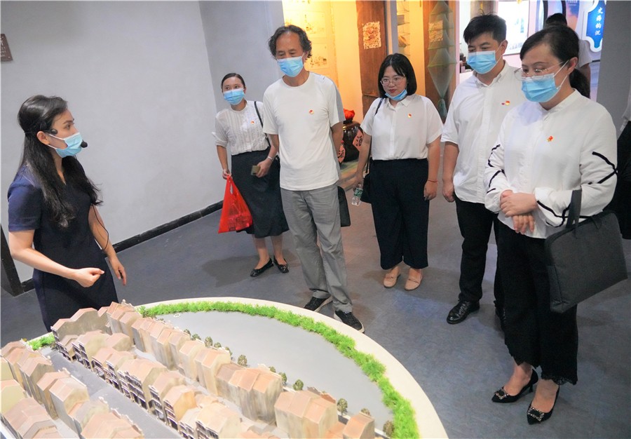 党委理论学习中心组首先走进北海老街红色旅游驿站。红色驿站主要通过展板展示、VR互动及电子设备等形式再现北海的历史。随后到老城历史文化馆,展馆重现老城昔日繁华景象,展示老城独具特色的历史遗存,深度挖掘老城的精神文化内涵,展示出一种缘海而生、伴海而生、中西合璧的滨海古城历史文化底蕴。