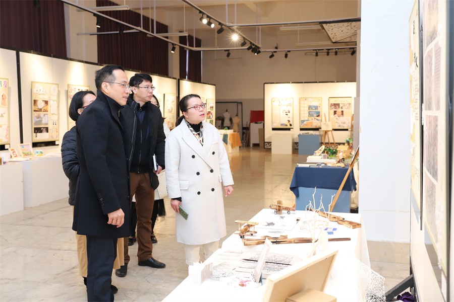 调研会后,苏志安一行还实地走访、参观了我校设计艺术学院视觉传达专业2019级《绘本创作》课程结课作品展、图书馆党史阅读角、建筑与环境艺术学院“红色元素模型展”,与动画与传媒学院三维动画《半条被子》制作团队进行了面对面的交流。