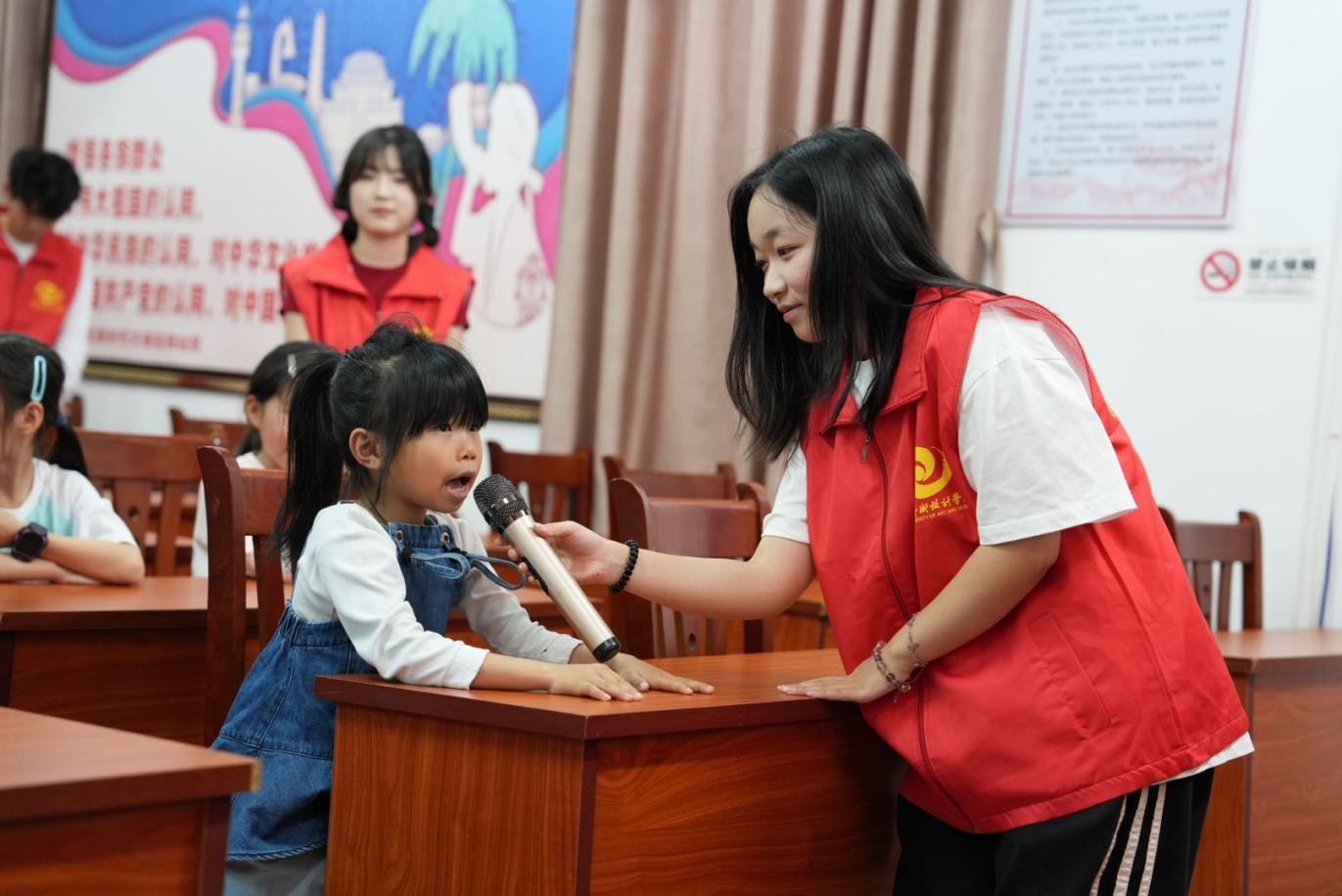 “老师点我,点我呀!”,口才课上,孩子们褪去了往日的胆怯,从害羞低头到主动举手发言。志愿者们通过打造角色扮演剧场、故事接龙大挑战等多种形式的课堂,给孩子们提供一个展示自我、提升自信的舞台,激发孩子们的想象力与创造力。志愿者的耐心倾听,也在他们心中种下了自信表达的语言之花。
