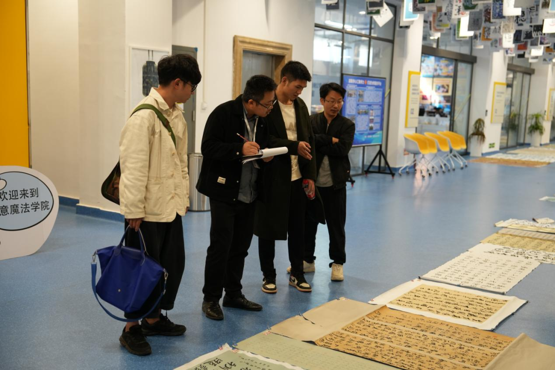 12月8日下午,我校2023年汉字书法大赛终评会在图书馆负一楼创新创业实践中心顺利举行。本次终评会评审团由原广西书法家协会副主席、中国书法家协会会员黎东明,原广州美术学院教授、书法篆刻研究室主任、书法研究所所长王见,原绵阳师范学院美术与设计学院教师邓建华,美术学院副院长龚为及创新创业学院院长云曼共同组成。