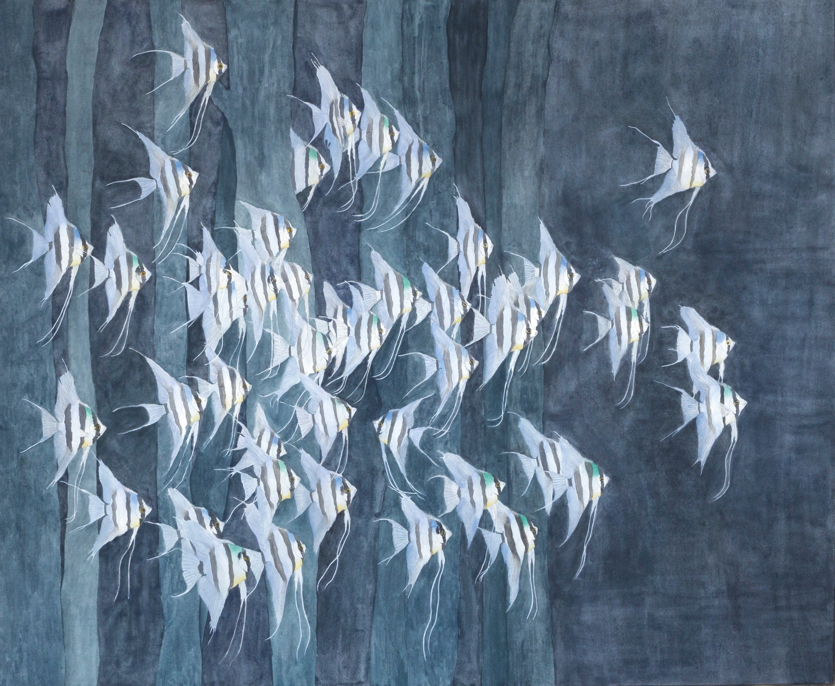 白滢《群鱼夜游》169×138cm 2023年 纸本