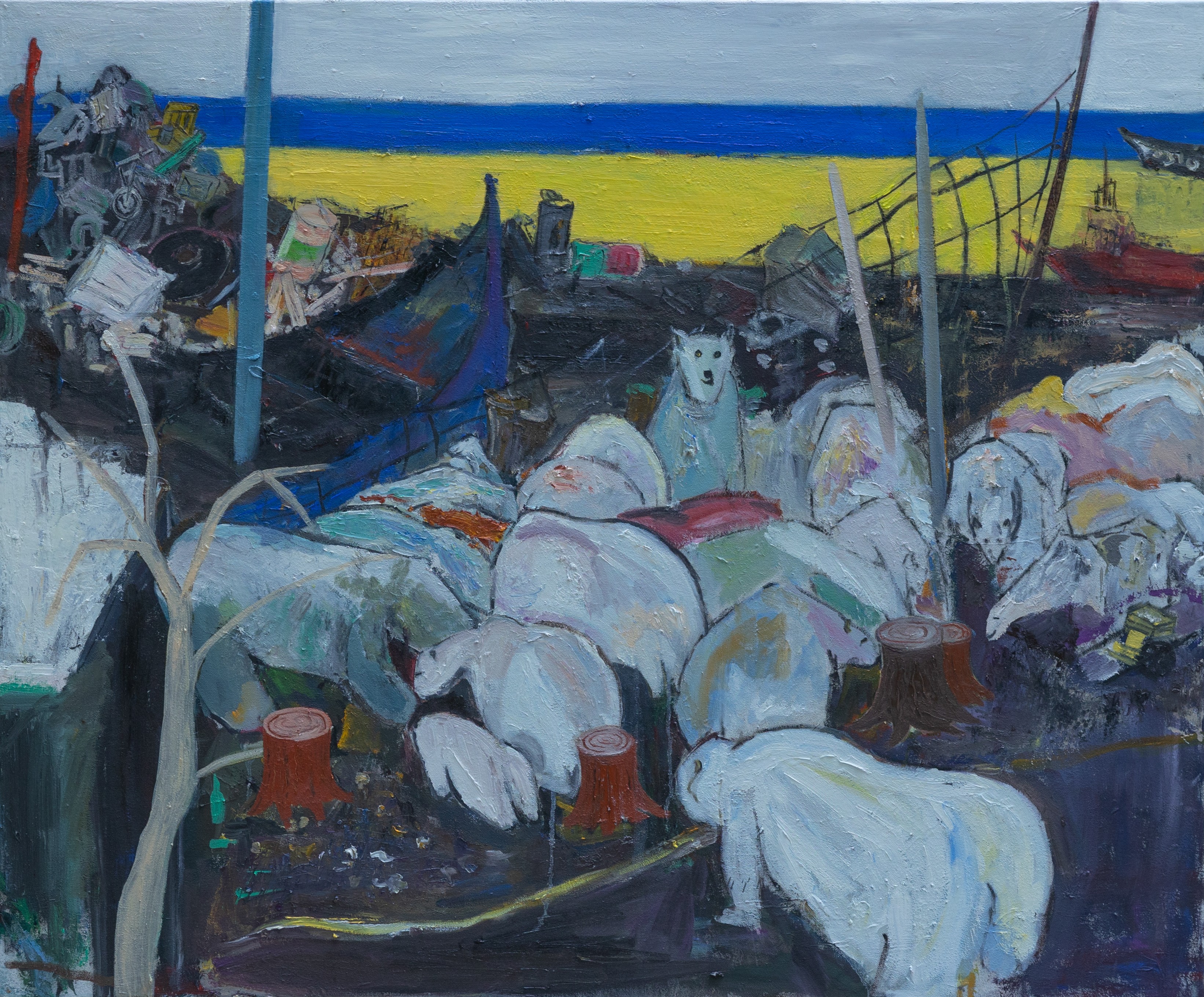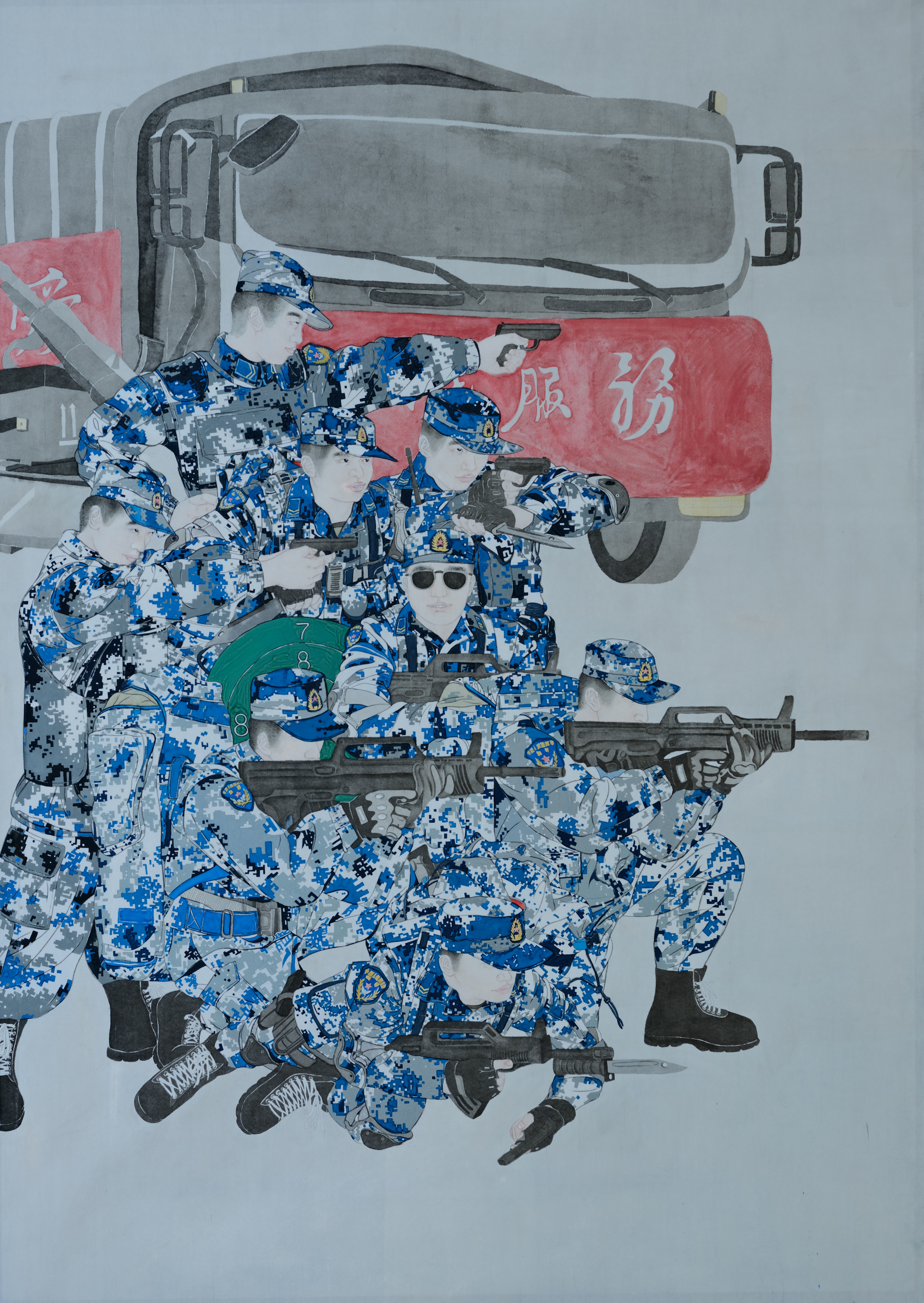金燕玲《保卫黄河》120cm×161cm 2023年 纸本