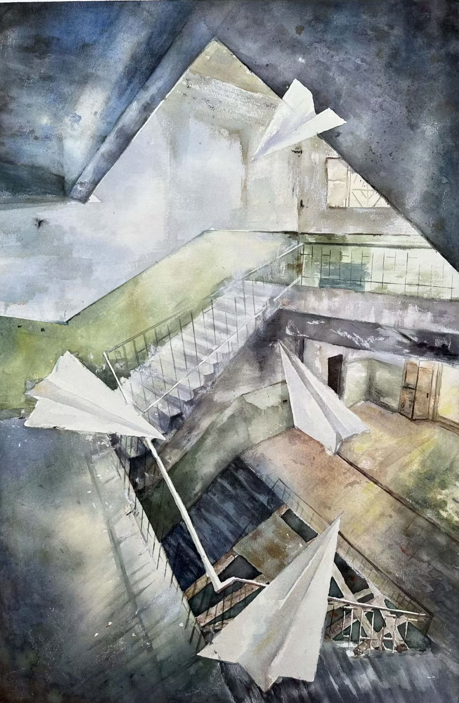 邵俊茹《记忆的小窗》76cm×53 cm 2023年 纸本水彩