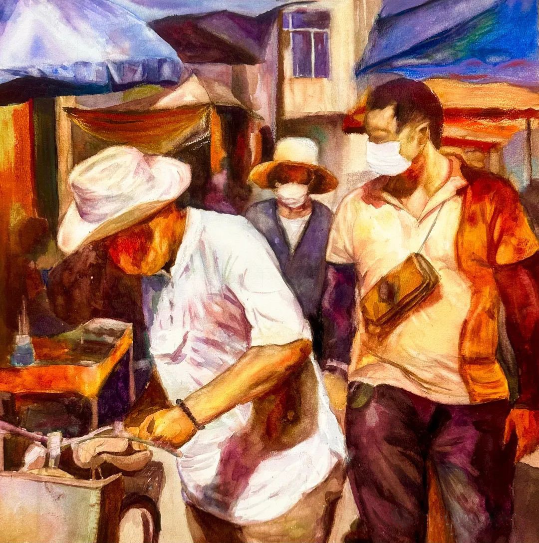 常玉研《集市一瞥》48cm×48cm 2023年 纸本水彩