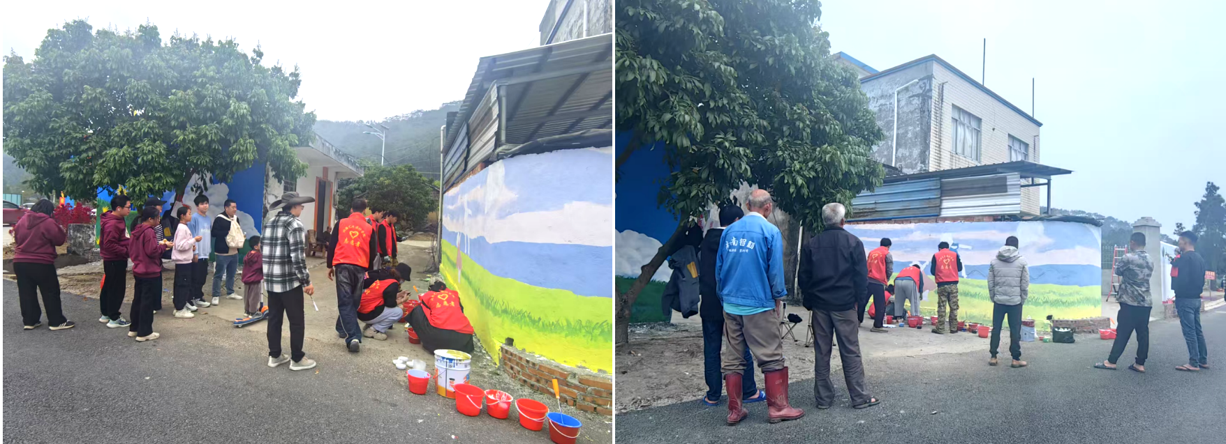 本项目立足国家乡村振兴战略背景,针对乡村文化资源未活化、环境品质不足等问题,受曲樟乡邀请,建筑与环境艺术学院张春东院长和教师团队与合浦县曲樟乡党委书记罗伟、乡长凌荣寿、副乡长庞丽等围绕“产学研基地建设”“乡村振兴科研课题”展开座谈,双方就井山村“小洱海”墙绘项目、井山村荔枝产业园规划等具体项目达成合作框架,在双方领导的见证下,与合浦县曲樟乡井山村村委会签订横向科研课题合同,该项目起止时间为2024年11月—2025年3月,按照前期调研、设计构思、方案汇报、项目实践环节实施,预计完成井山村550平墙绘项目。该项目为当地乡村旅游发展和改善乡村环境风貌提供了有力支持助推了当地旅游业发展。