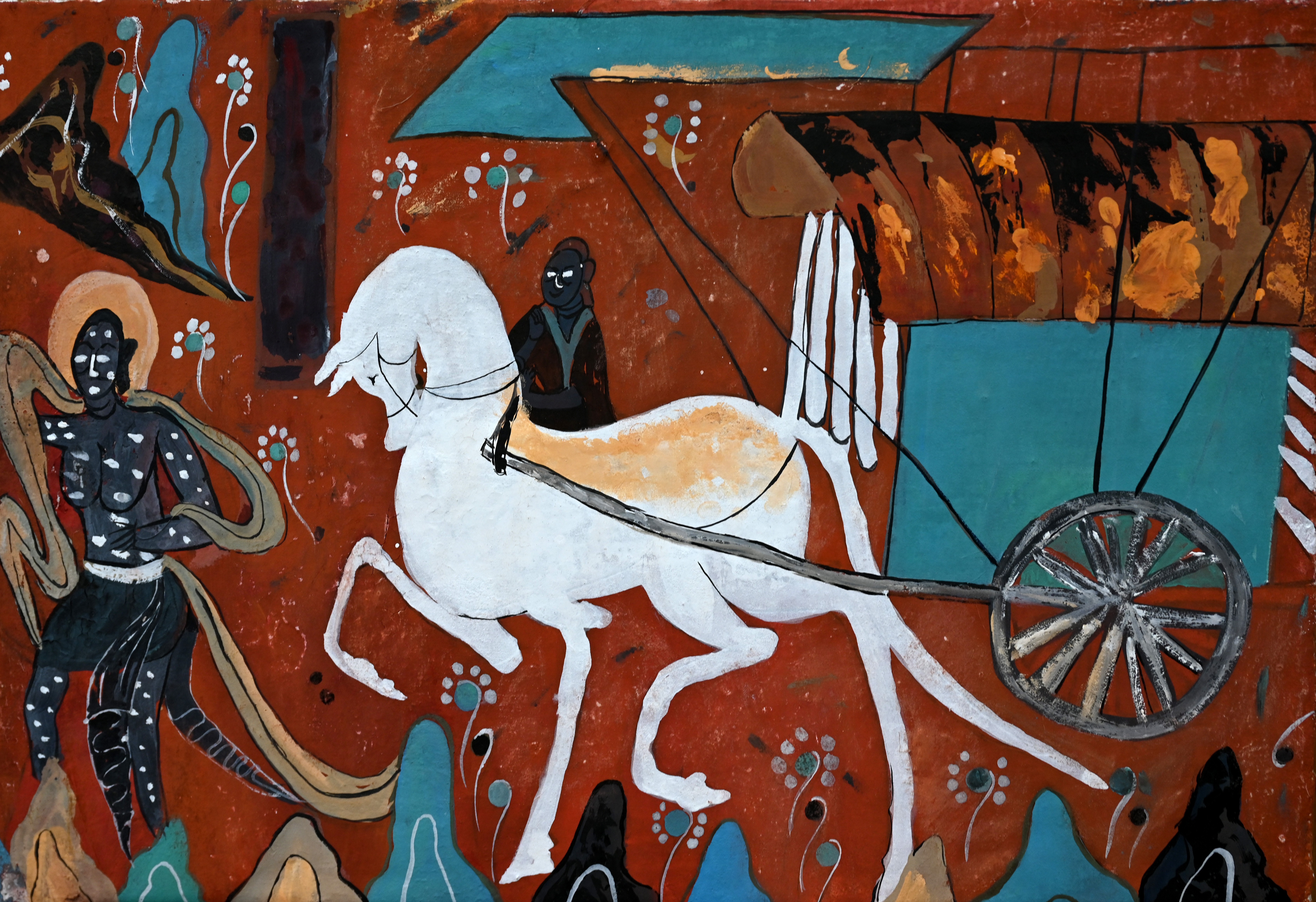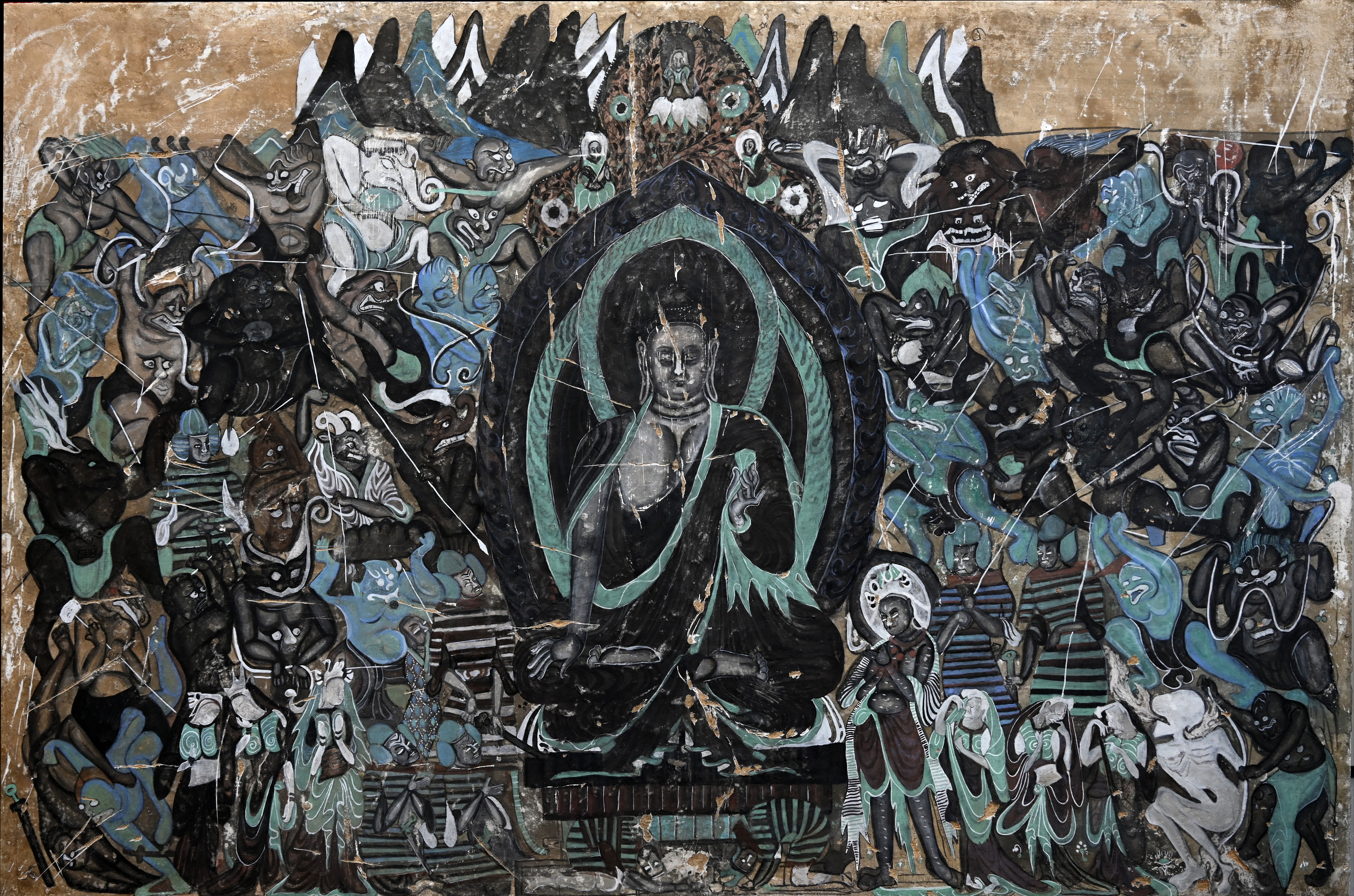 这幅壁画以其精湛的技艺和深刻的故事性,讲述了佛陀战胜心中恶魔,最终达到觉悟的过程。每一道线条,每一种色彩,都在无声诉说着佛教关于慈悲、智慧与解脱的宏大叙事。临摹之时,我努力捕捉其中的精神性与动态感,力图再现那段波澜壮阔的历史瞬间。