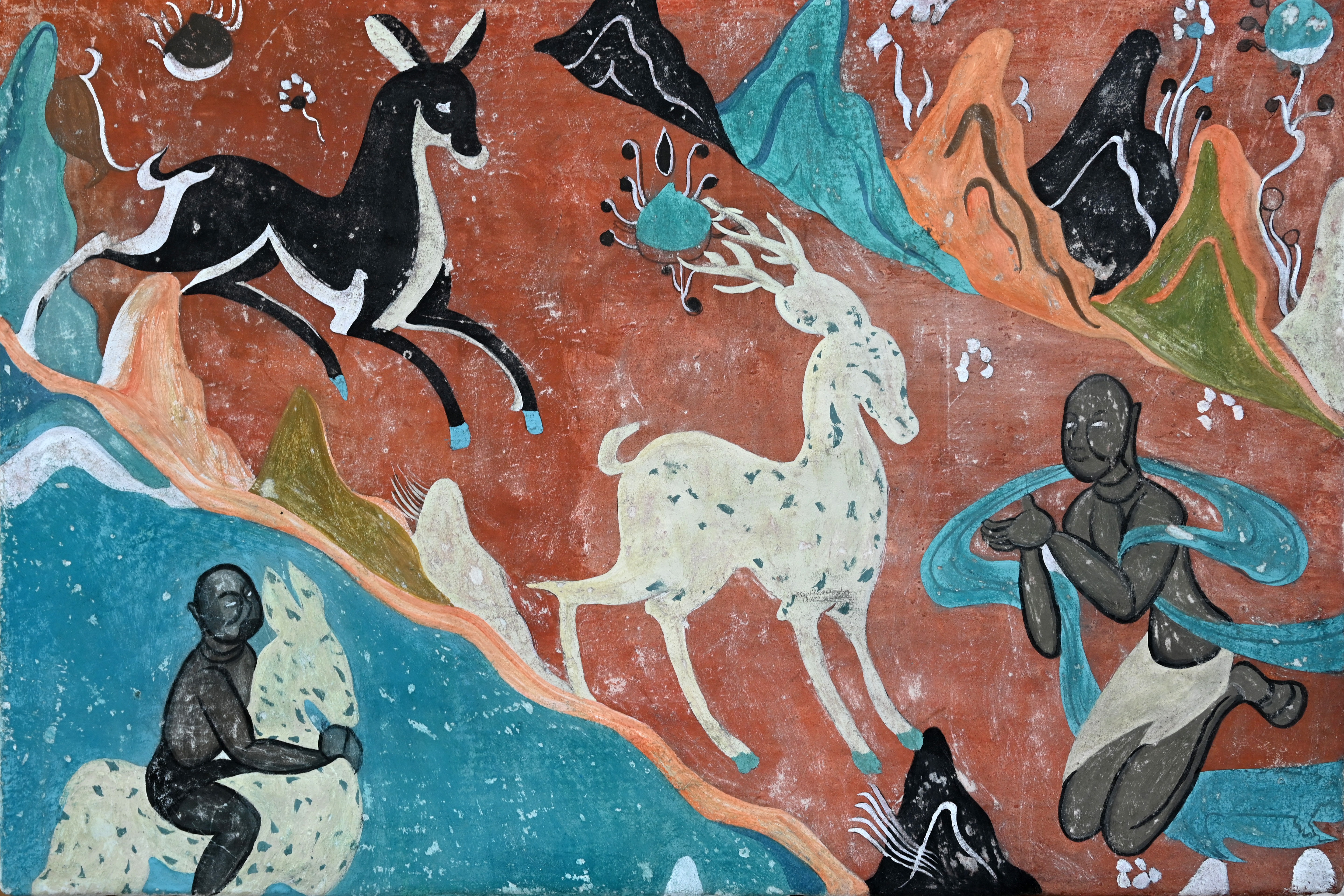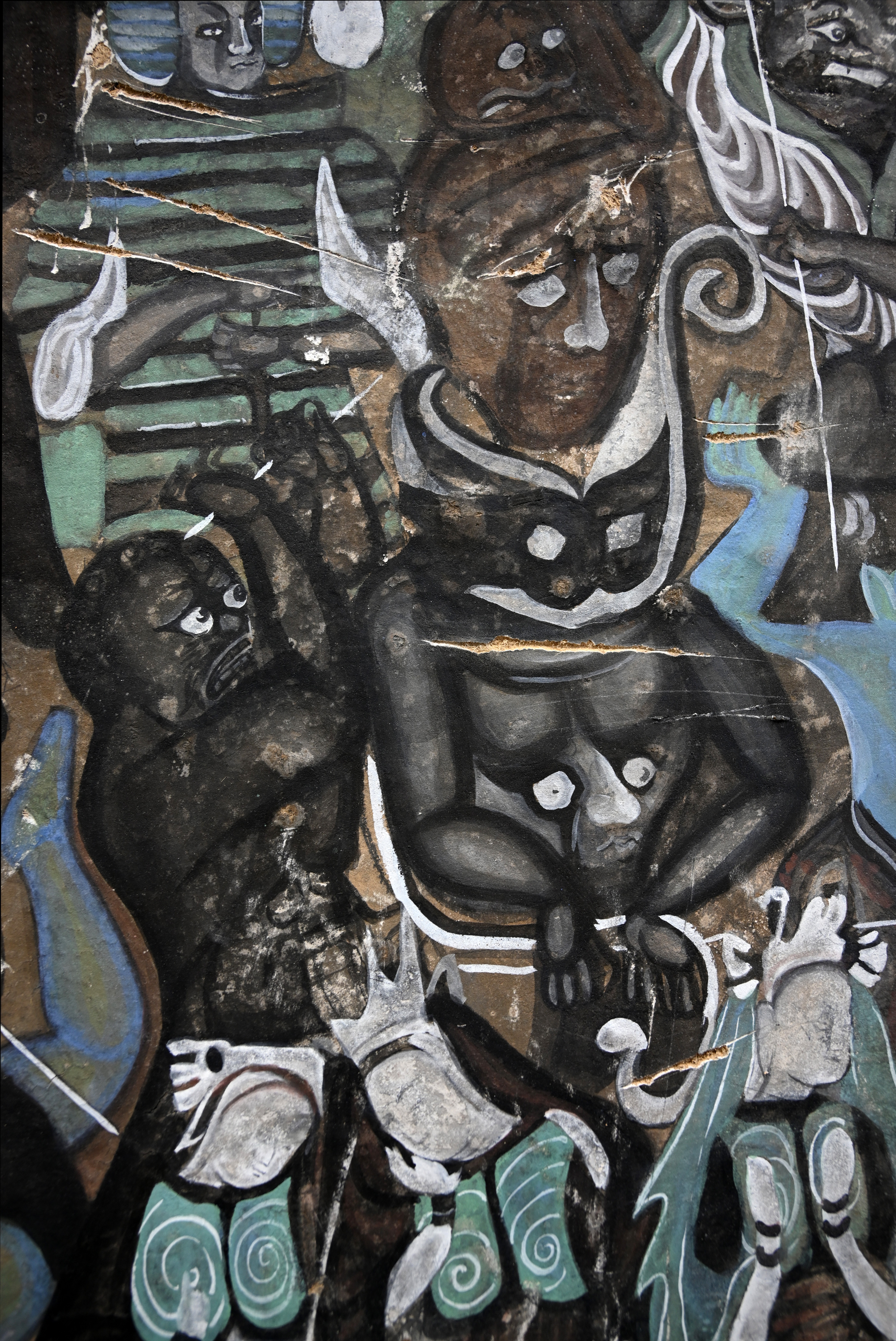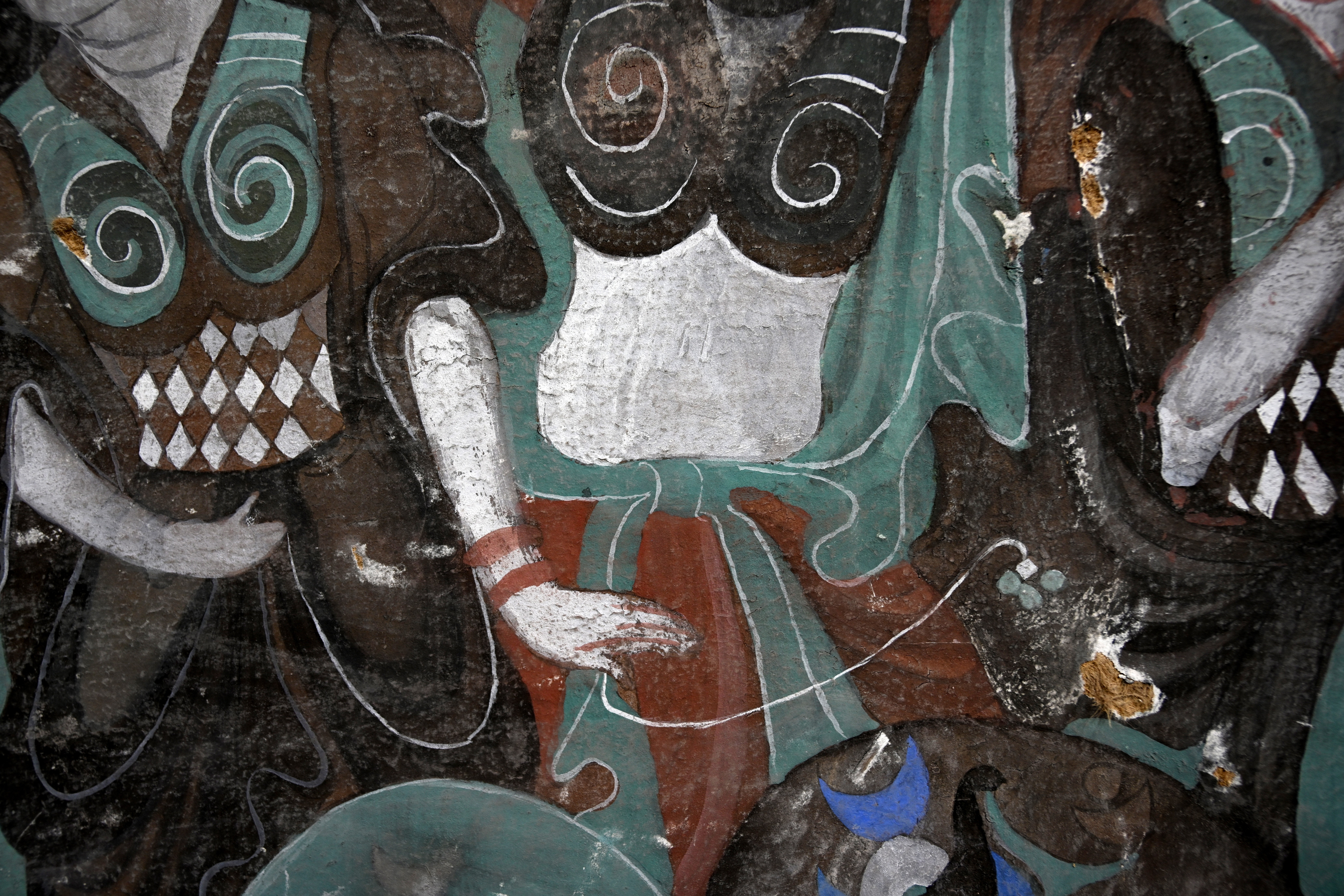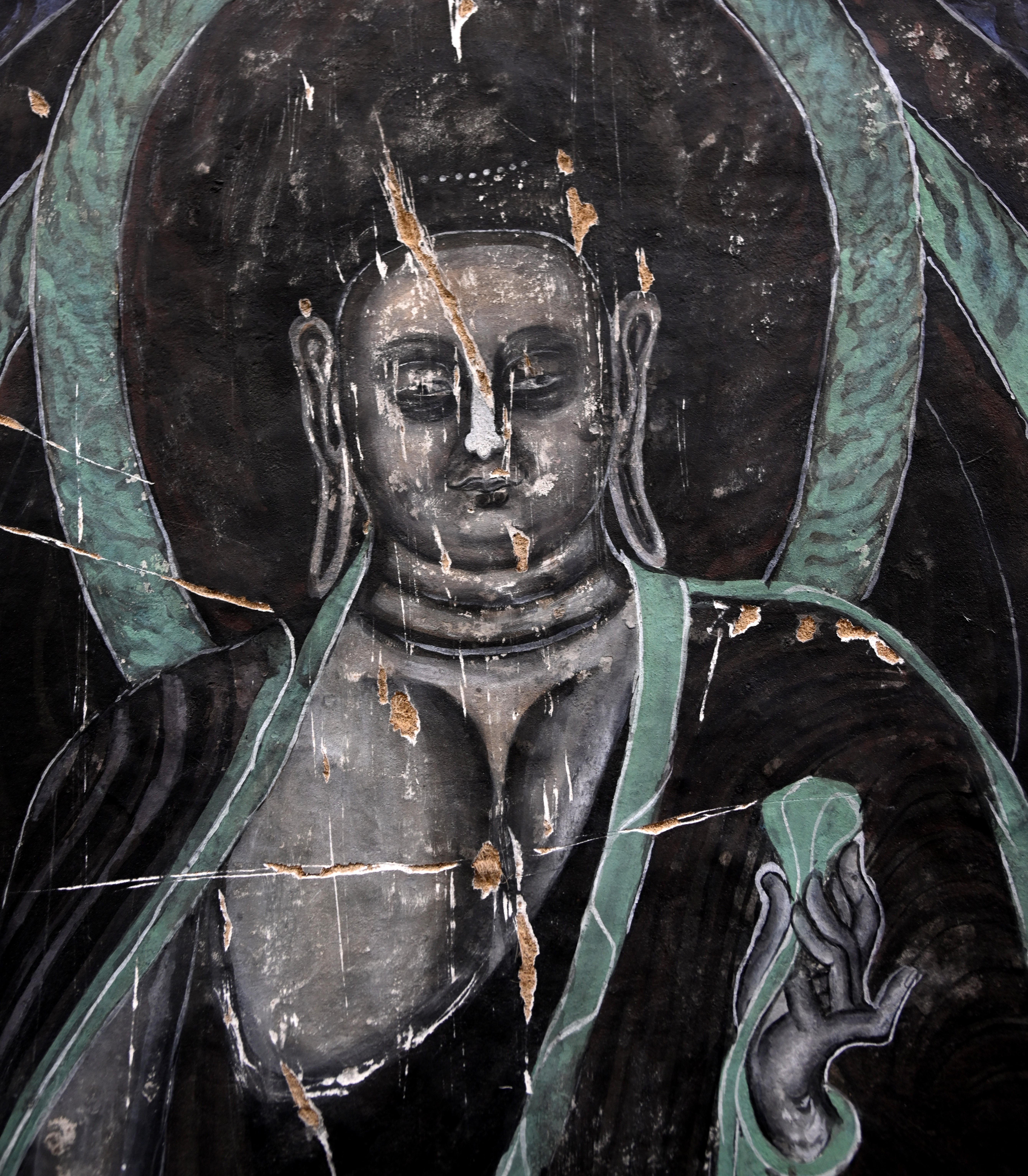 4.做旧:根据壁画现状,采用刮、刻、打磨等不同方法进行做旧。
