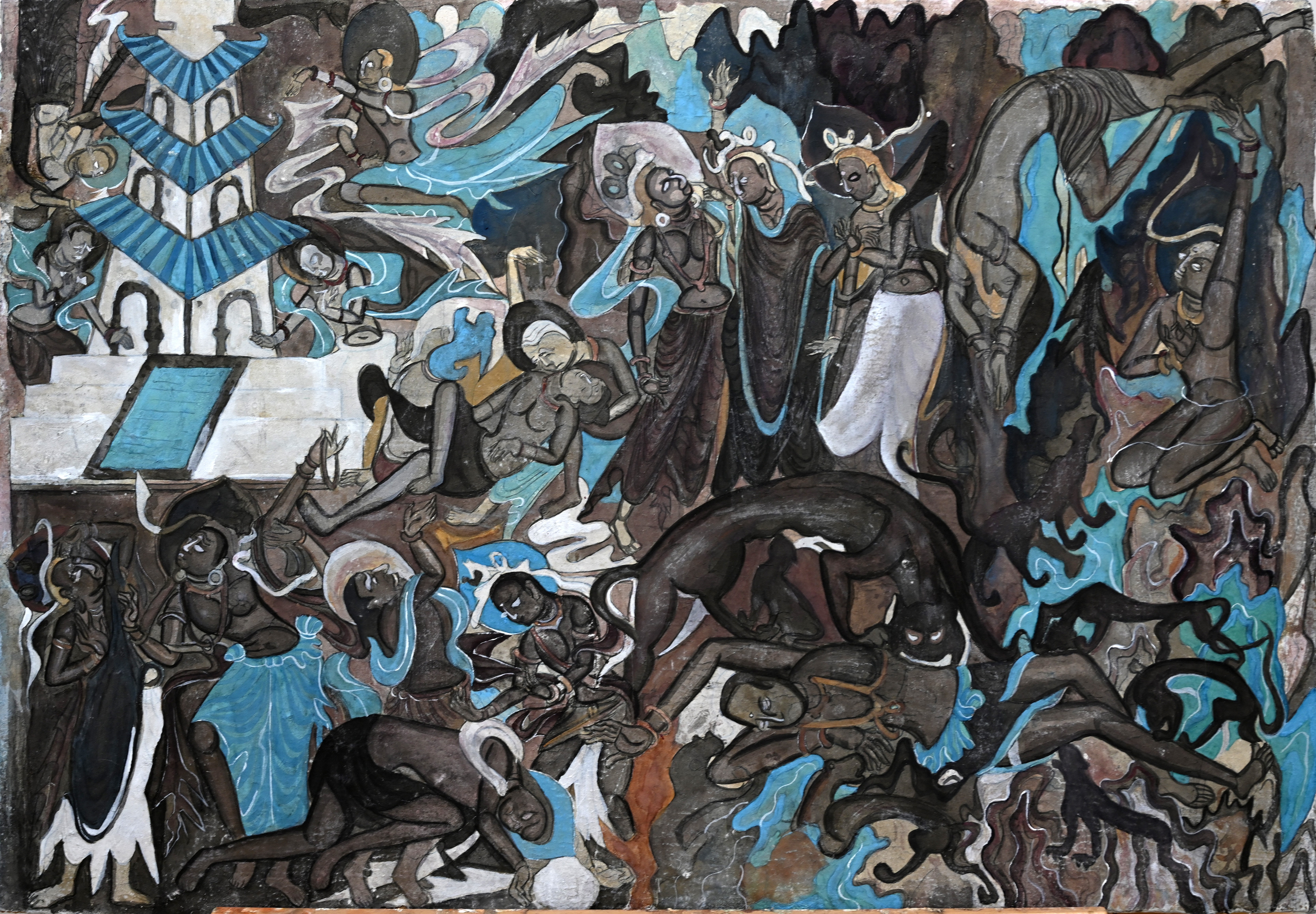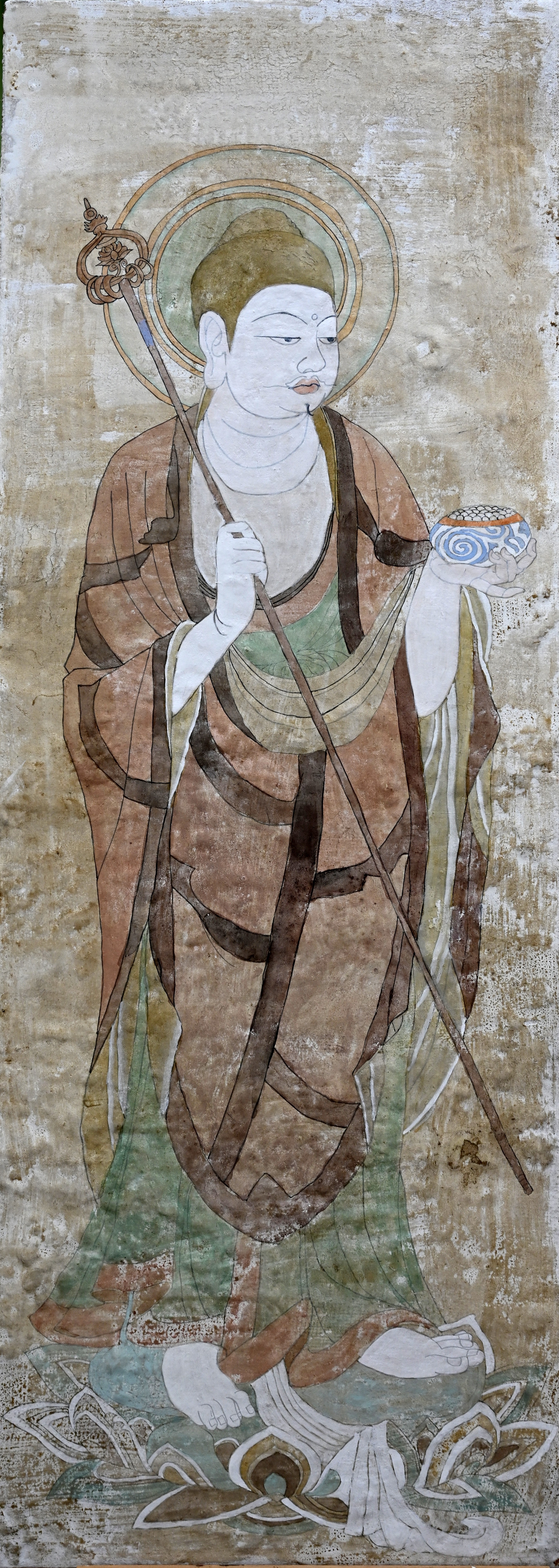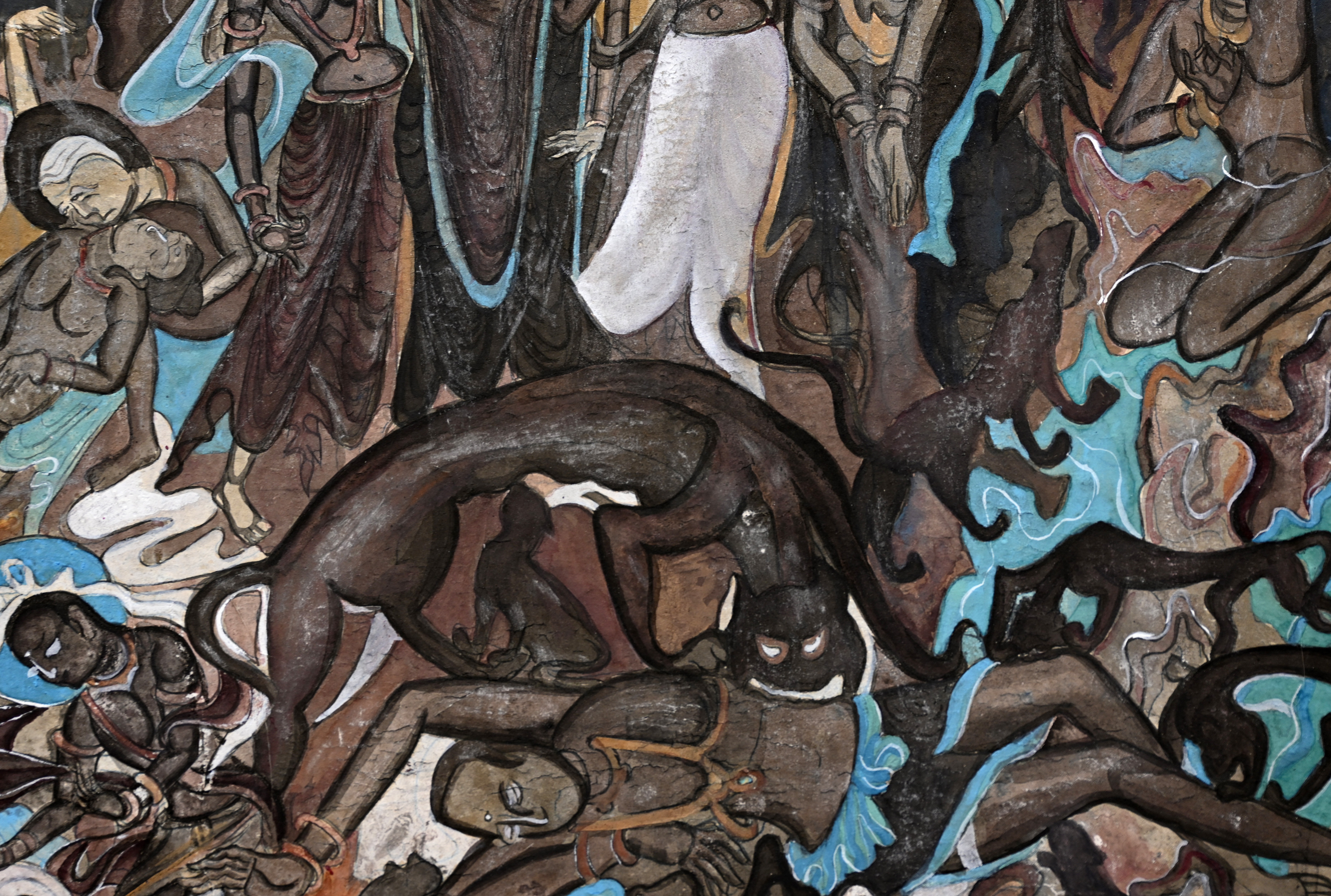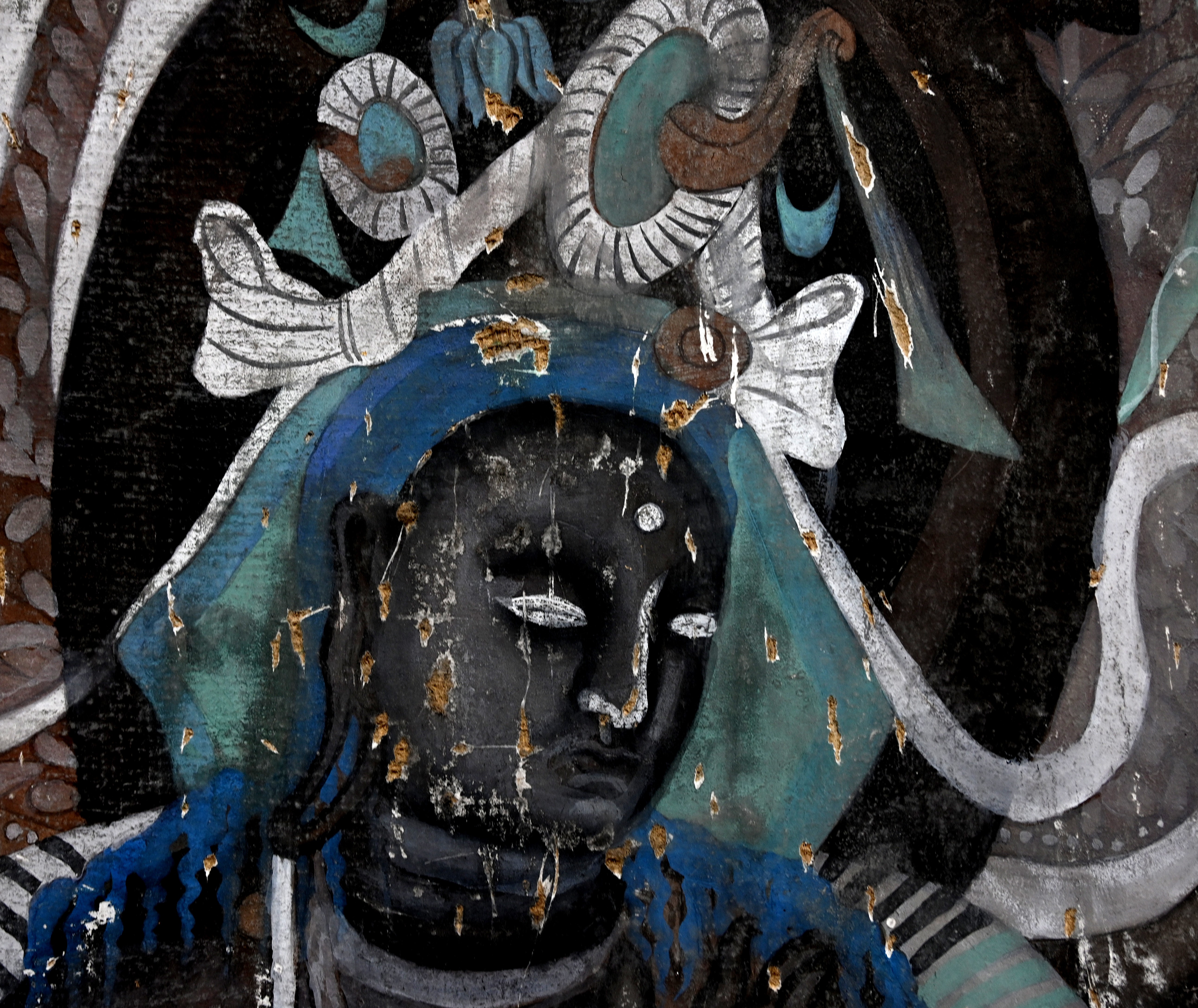 4.做旧:根据壁画现状,采用刮、刻、打磨等不同方法进行做旧。