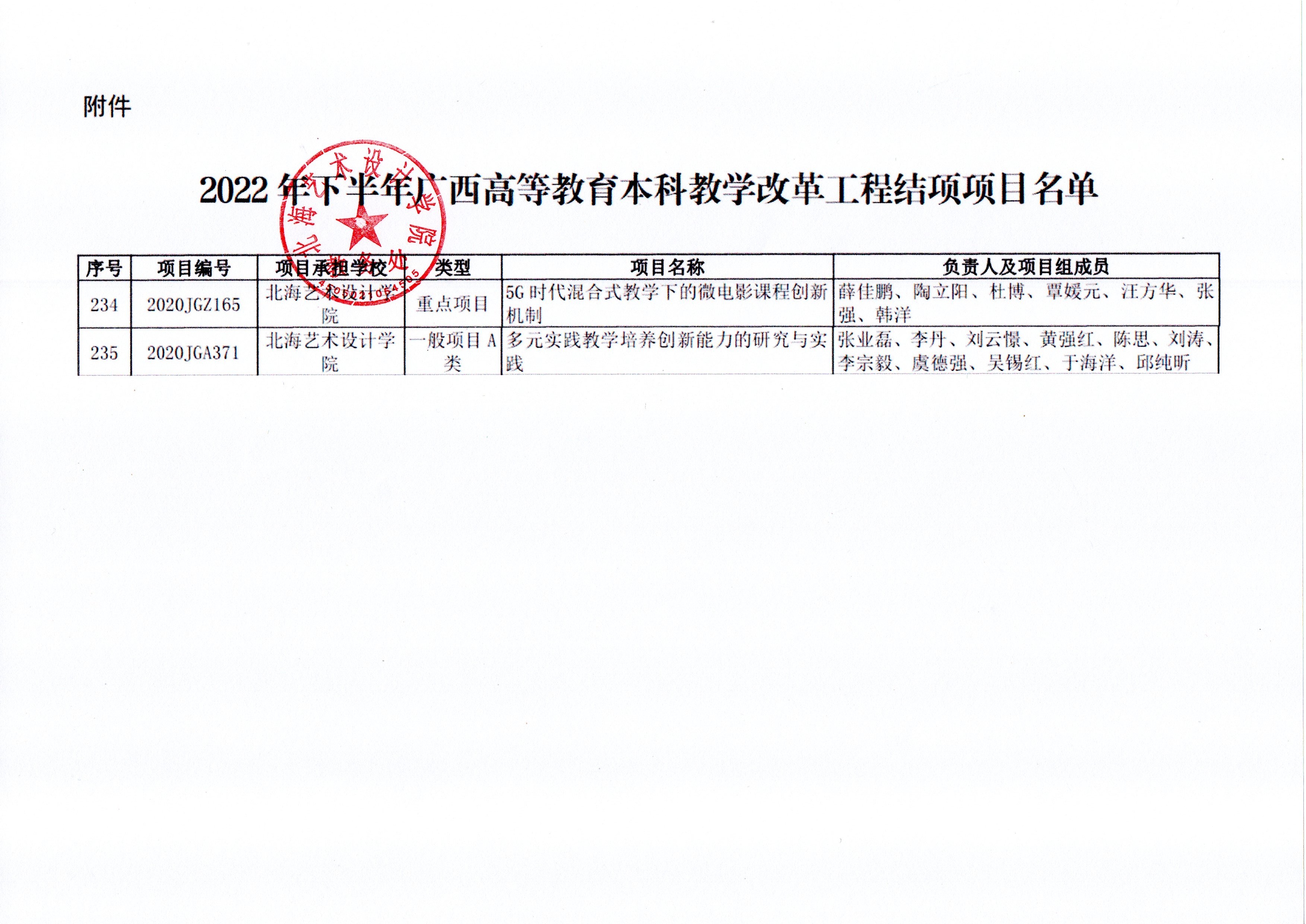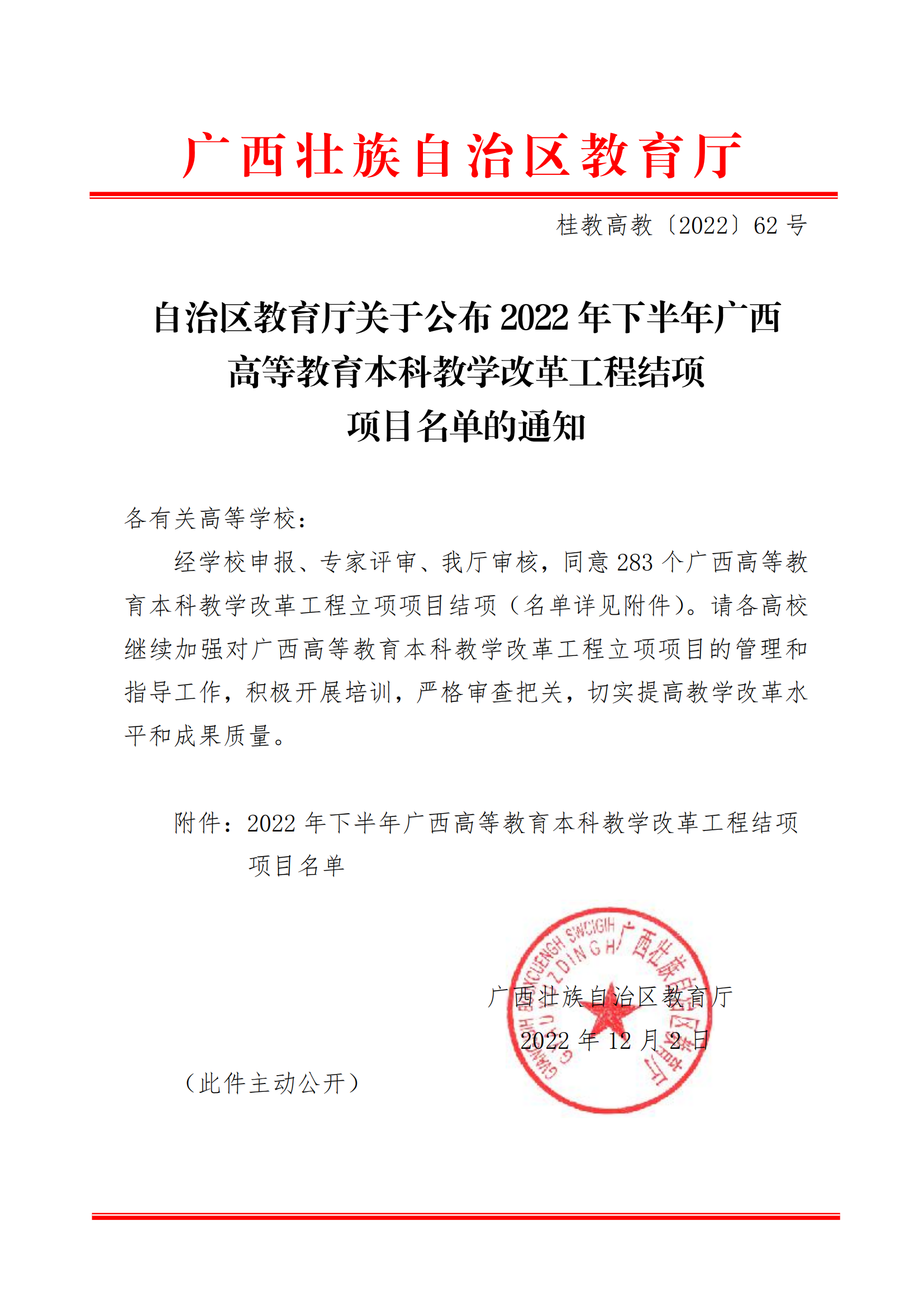 桂教高教〔2022〕62号自治区教育厅关于公布2022年下半年广西高等教育本科教学改革工程结项项目名单的通知.pdf