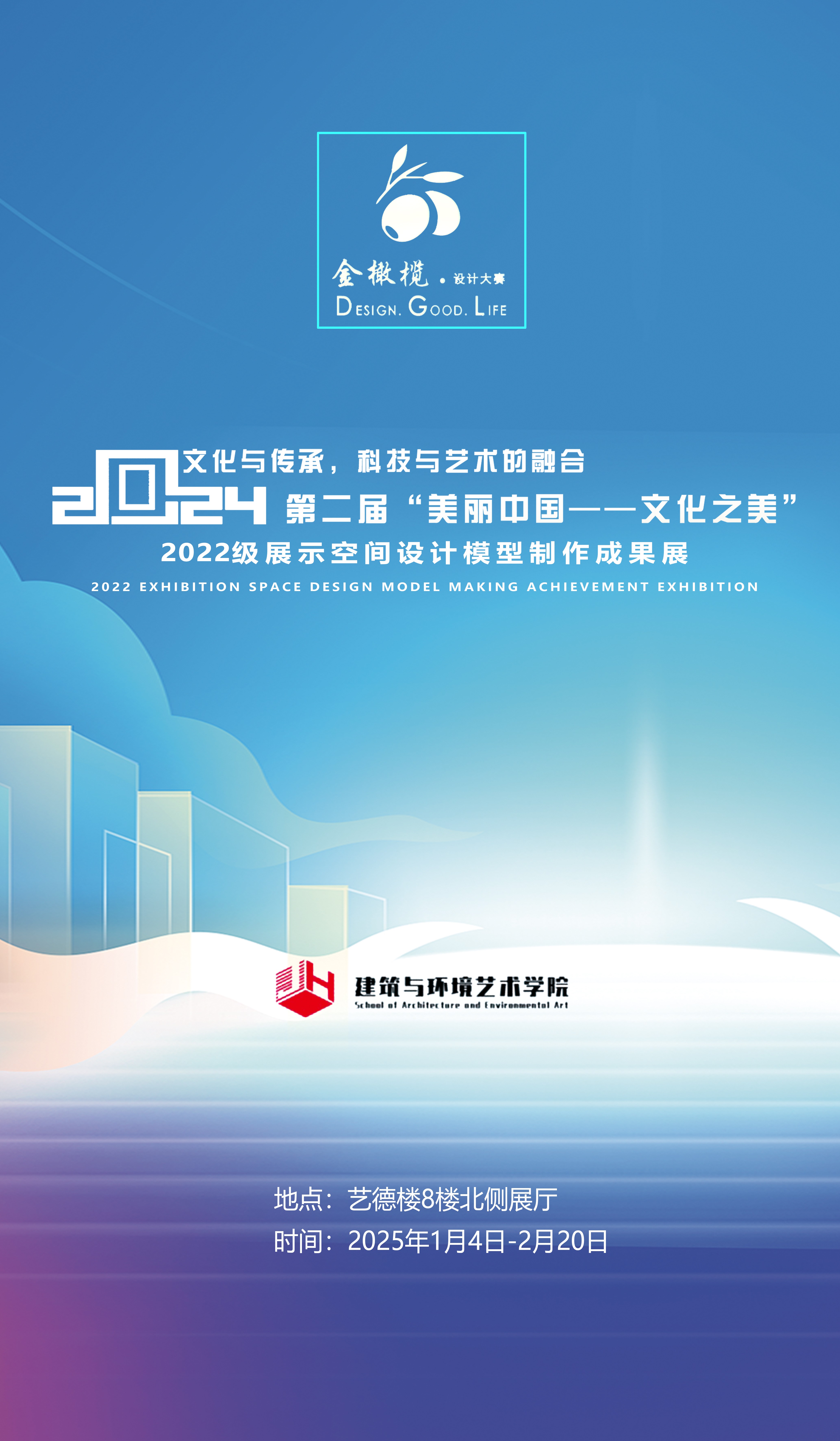 在建筑与环境艺术的璀璨星空中,一场关于展示空间设计的盛宴即将拉开帷幕!建筑与环境艺术学院金橄榄杯第二届“美丽中国・文化之美”——2022级展示空间设计模型制作成果展,正带着文化传承的深厚底蕴与科技艺术融合的创新光芒,向我们大步走来。