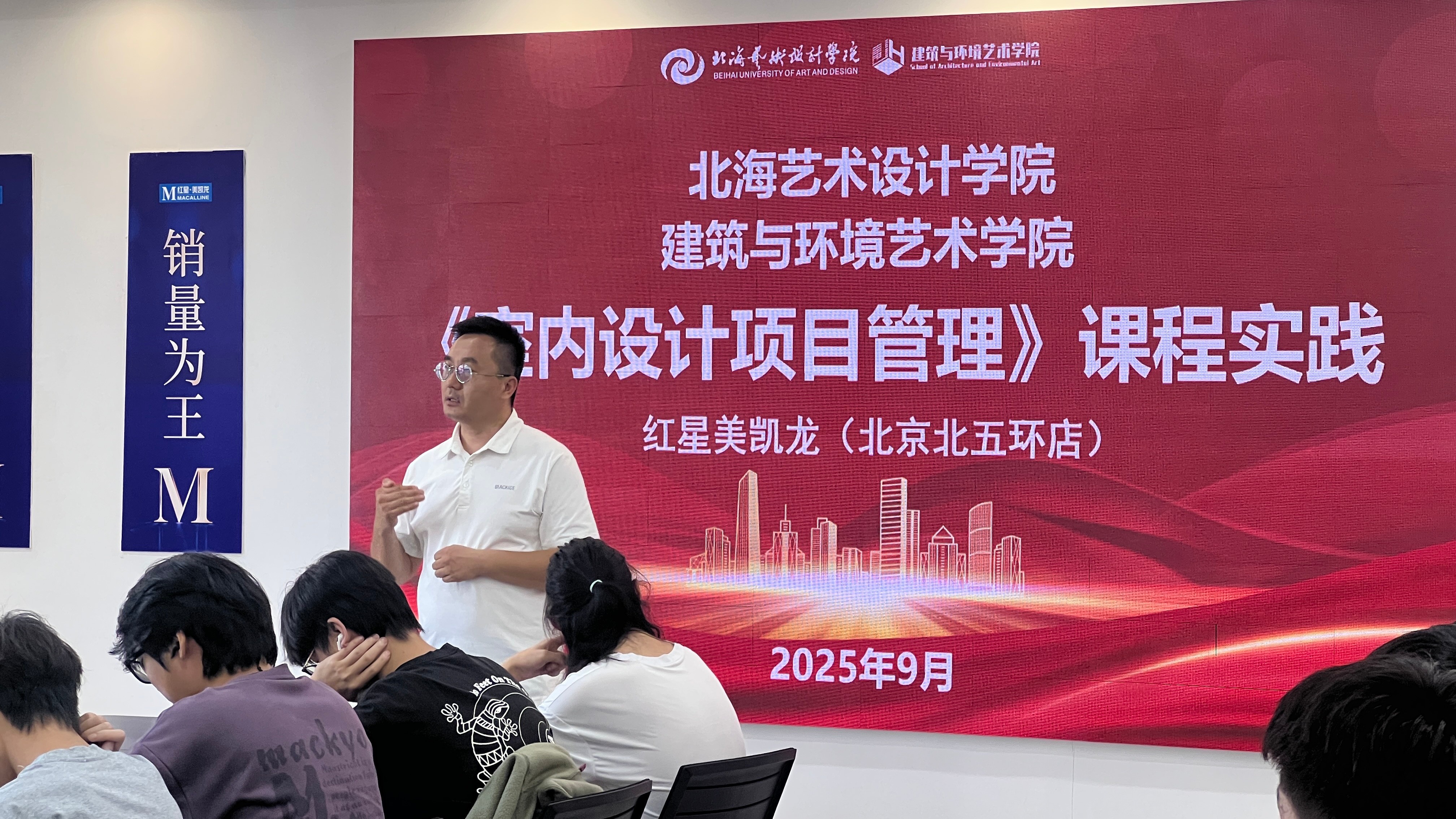 9月18日至19日,建筑与环境艺术学院延续创新实践教学模式,由北京实践基地组织环设22级学生赴北京红星美凯龙全球家居1号店,开展为期两天的沉浸式实践教学,将《室内项目管理》课堂搬至行业一线。本次课程由郭瑞、张云、张浪三位资深设计师主讲,以“问答互动+案例解析+市场调研”形式,打造兼具专业深度与行业广度的实践课堂。