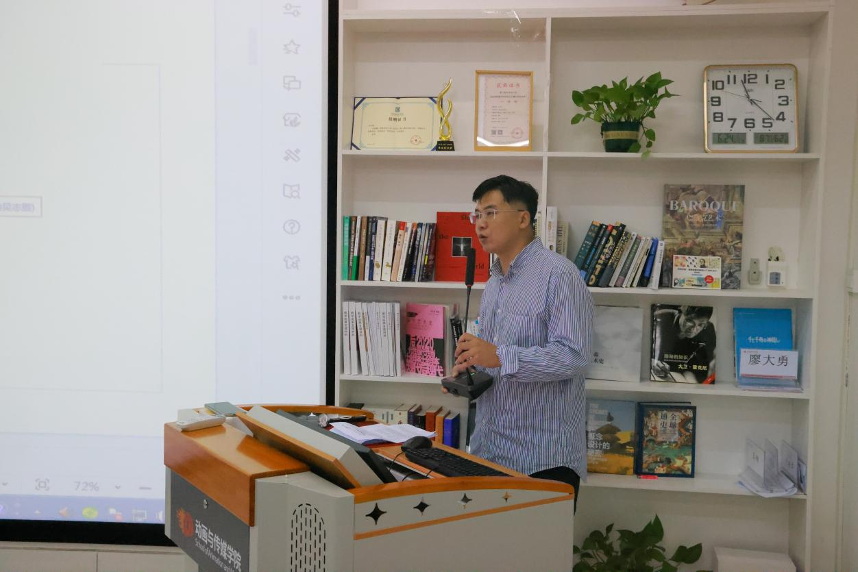 教研室主任吴锡红对本学期的工作成果进行了详尽的汇报。他详细阐述了动画专业在课程材料的创新、毕业设计的精心指导、教学活动的丰富多样、参赛作品的成绩以及科研项目的进展等方面取得的成效,展示了动画专业在教学内容和方法上的不断探索与创新,以及对学生全面发展的高度重视。此外,吴主任还总结了外聘教师的教学工作和校企合作的成果,展示了动画专业在实践教学和校企合作方面的积极进展。