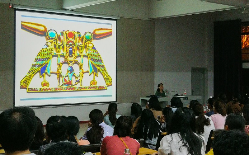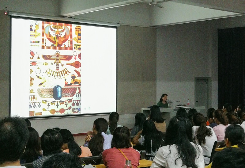2017年10月27日晚7:30,在西校区伦理楼107,北京服装学院教授,硕士生导师,美术系系主任,民族服饰博物馆馆长,民族服饰文化研究学科负责人徐雯教授再次莅临我院名师大讲堂,给全院师生带来了一场题为《外国古典图案浏览》的讲座。