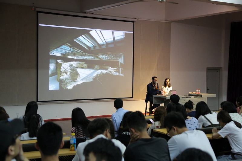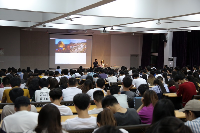 Hutter Akos教授为我们详细介绍了世界文化遗产的相关保护性建筑,并说到我们在对一些遗址进行保护时,不只是单纯的进行维护,而是根据历史文化进行相关保护性建设,我们要学会尊重历史,在原址的基础上进行保护,而不是简单的将这些古建筑、古文物移放到博物馆。在场师生频频点头表示认同,并对此进行反思。