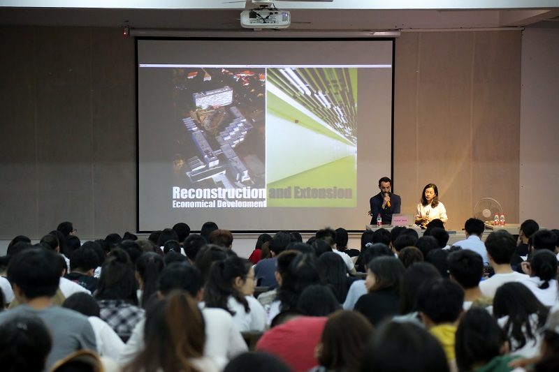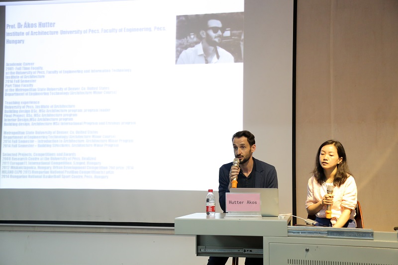 2018年4月22日19:30于我校西校区伦理楼107,匈牙利佩奇大学建筑学院院长Hutter Akos教授为我校师生带来一场题为《佩奇大学的研究、设计与教育》的精彩讲座,广大师生前来聆听讲座,该讲座由来自佩奇大学张倩博士翻译。