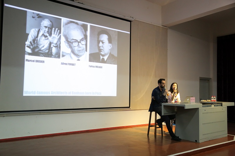 讲座开始,Hutter Akos教授为我们简单的讲述了他的经历。Hutter Akos教授在佩奇大学从事教育事业超过17年的时间,他谈到佩奇位于匈牙利南部,其城市建筑有着浓郁的中世纪氛围,历史和宗教是促使这座城市呈现中世纪氛围的主要原因,悠久的历史中,宗教一直在佩奇扮演着重要的角色,与此同时Hutter Akos教授为我们展示了佩奇城市鸟瞰图和佩奇各种特色建筑的图片。他提出“建筑的研究、设计和教育都是紧密相连的”这一观点,使在场师生引起共鸣。