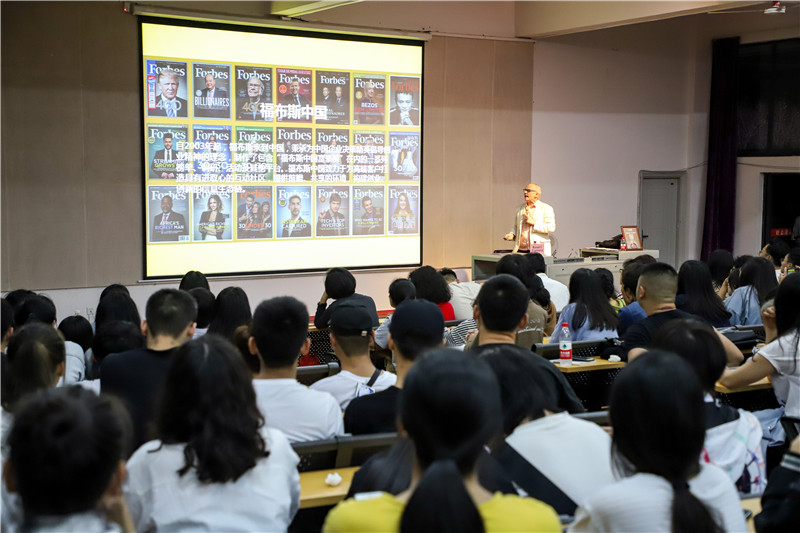 首先,范鲁贤先生通过图片向同学们介绍了福布斯的历史,谈到福布斯从创办至今所经历的困难。范鲁贤先生讲到,每年的福布斯排行榜不仅仅只是简单的介绍世界各地的富豪,其目的是在于,通过成功人士的经历向大众传递“商业的目的是要创造幸福,而不仅仅是财富的积累”的正确理念。这也是福布斯每年衡量上榜者的标准之一。