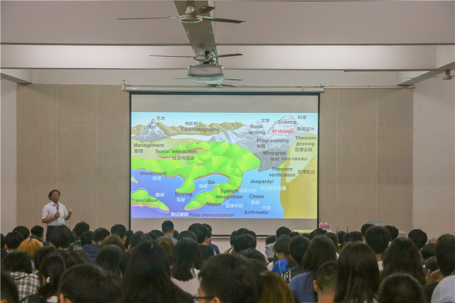 李教授阐述了他对数字媒体艺术教育的思考:19世纪的文化用小说定义,20世纪的文化用电影定义,而21世纪的文化用交互界面定义。这让学生意识到了数字媒体艺术在现代化设计中的重要性。李教授还介绍了当代人工智能和5G技术对我们社会生活的影响,他指出“用户+体验+情感化设计>人工智能”,“未来设计=智能科技+数媒艺术+物联网”,理解媒介才能更好地理解时代和把握未来。
