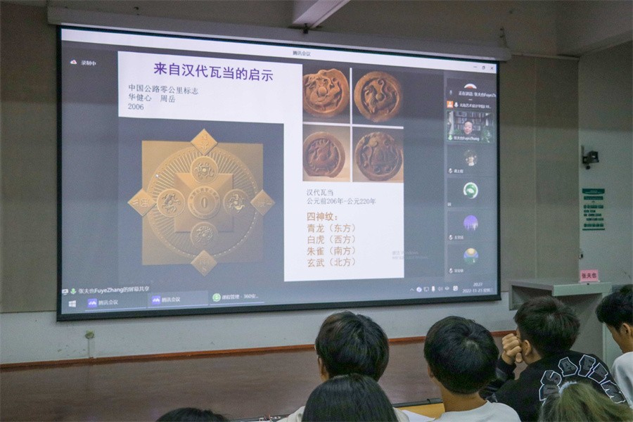 11月23日晚,于西校区伦理楼107,设计艺术学院名誉院长张夫也教授带来了一场题为《传统文化元素在现代艺术与设计的应用》的精彩讲座,讲座由设计艺术学院副院长白建强主持。