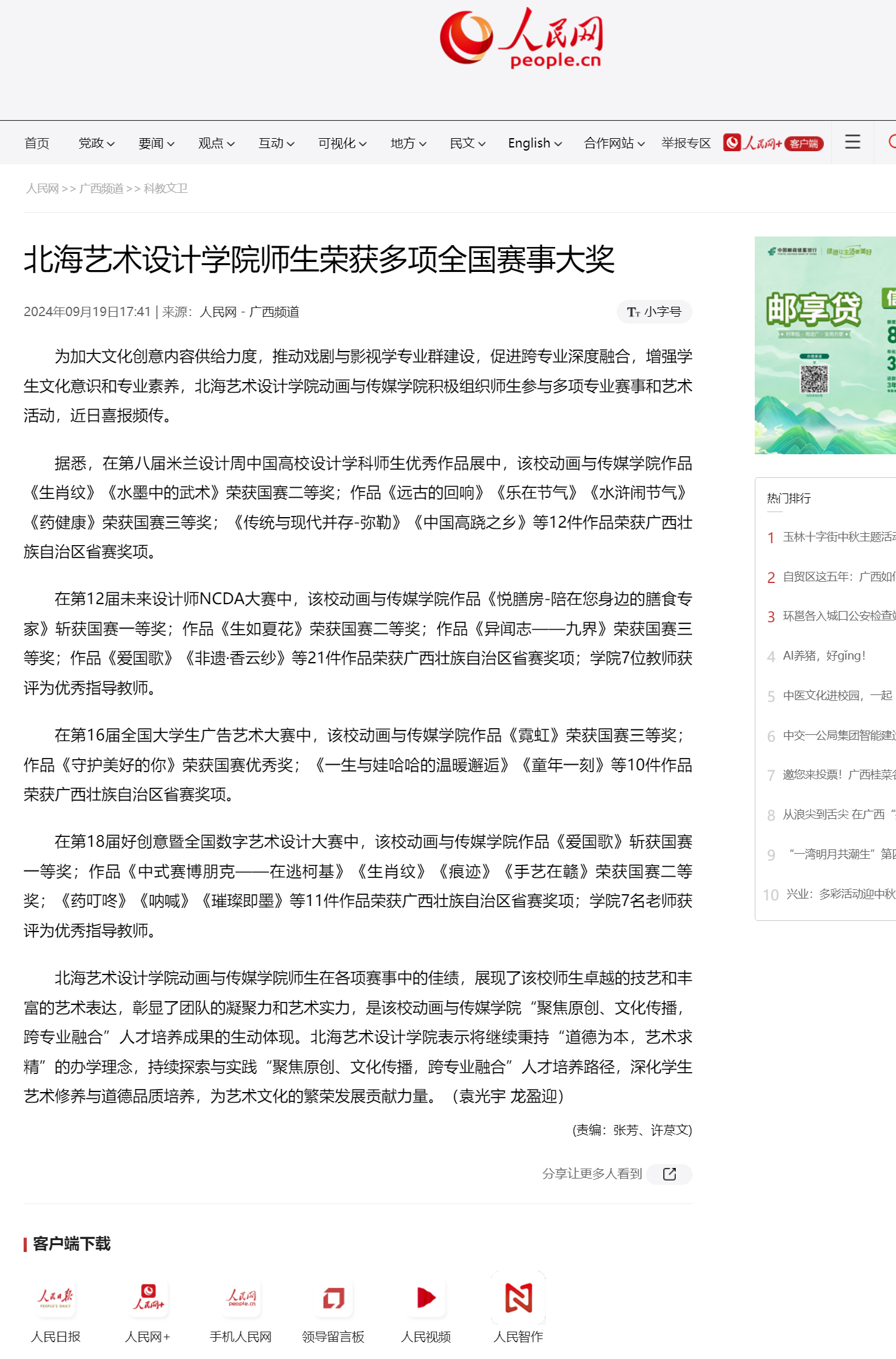人民网:北海艺术设计学院师生荣获多项全国赛事大奖