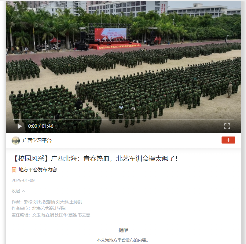 报道网址:https://article.xuexi.cn/articles/index.html?art_id=8900208694990889053&item_id=8900208694990889053&cdn=https%3A%2F%2Fregion-guangxi-resource&study_style_id=video_default&pid=&ptype=-1&source=share&share_to=wx_single