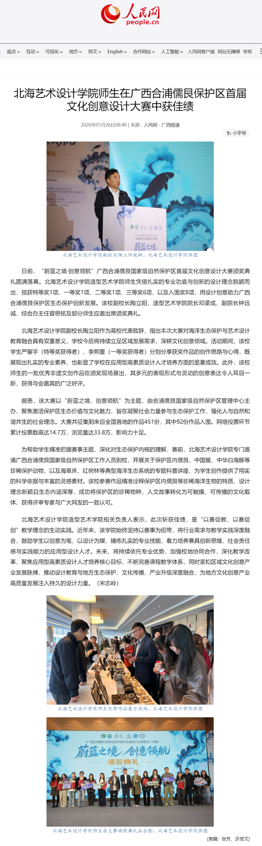 人民网:北海艺术设计学院师生在广西合浦儒艮保护区首届文化创意设计大赛中获佳绩