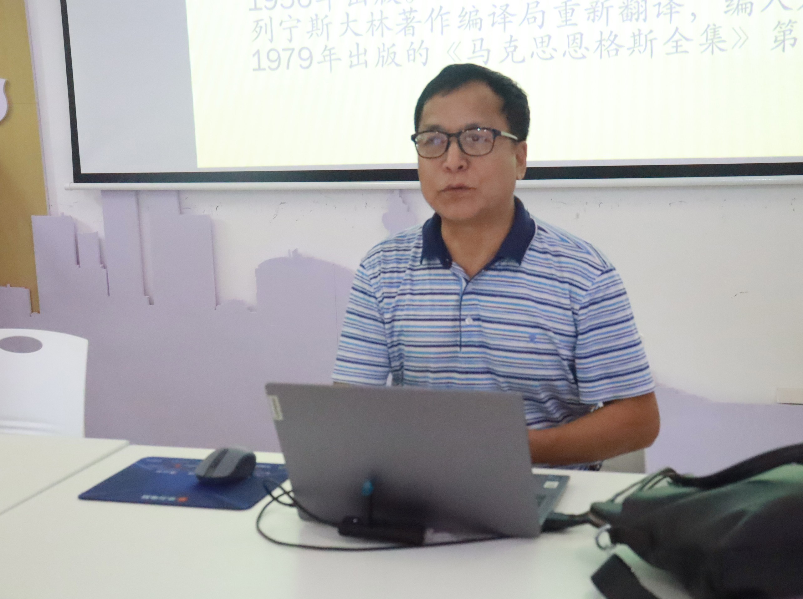 《1843年经济学哲学手稿》由三个独立又相互联系的部分组成,第一手稿批判了资本主义的工资理论、地租、异化劳动、无产阶级革命等,其核心思想是异化劳动理论。第二手稿的现存部分对私有财产的关系做了考察,仅占原手稿的1/10左右。第三手稿研究了私有财产的本质、共产主义需要、生产和分工、货币等。韦正球副教授主要介绍了异化劳动理论、共产主义理论、对黑格尔哲学的批判三方面的主要内容,重点讲解了马克思如何从劳动异化理论出发说明劳动是人的本质。现场参与活动的教师均表示收获颇丰、感触很深。