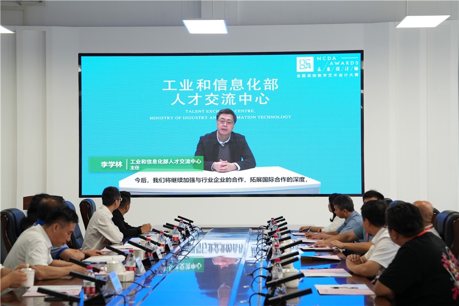 参会人员一同观看了工业和信息化部人才交流中心致辞短片、联合国教科文组织致辞短片和北海艺术设计学院宣传片并进行自由交流。
