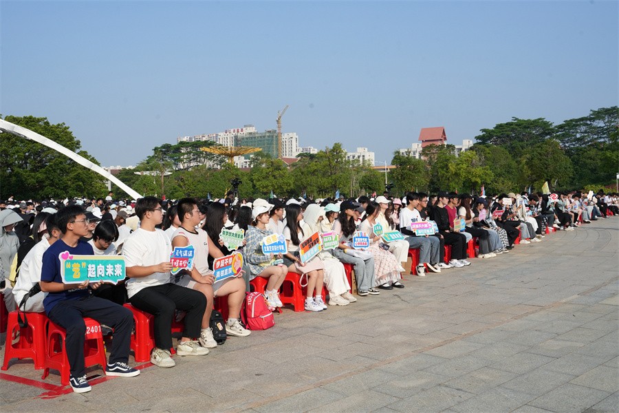 开学典礼现场,从五湖四海而来的青春学子满怀憧憬,热情洋溢,他们以专注的神情和昂扬的状态一同唱响“北艺之声”——《北海艺术设计学院校歌》,奏起奋发向上的青春乐章。(何汝鑫 林德赞 李宗毅 周小琪 郭 松/摄)
