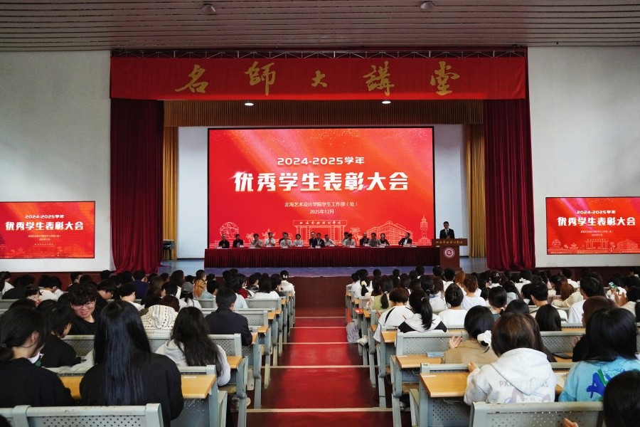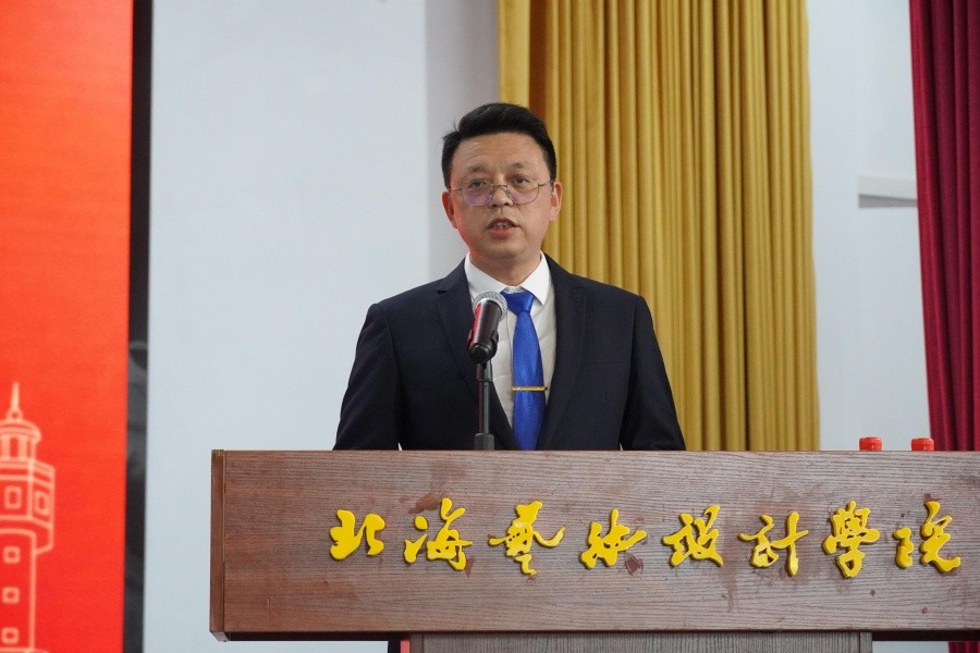 学校党委书记覃宪儒为表彰大会致辞。他指出,学校建校二十五年来,始终坚持社会主义办学方向,秉承“道德为本,艺术求精”的办学理念和校训精神,落实立德树人根本任务,构建“北海—北京双城育人、名校名师双名引领”独特办学体系,在教育强国建设的新征程中稳步向前,人才培养成效显著、硕果累累。他强调,唯有将个人艺术理想融入强国建设的宏伟蓝图,青春才能迸发出最为璀璨的光芒。对此,他对广大学子提出三点期望:一是将“小我匠心”融入“国之大者”,让艺术创作贴合时代脉搏、服务国家文化产业发展与民族文化传承;二是在技术飞速发展的当下,平衡“技术奔腾”与“人文定力”,以真挚情感赋予作品温度,凸显艺术设计的人文内核;三是拓宽视野的同时,深耕文化根脉,在吸收世界优秀成果的基础上,推动中华优秀传统文化、地方文脉的当代转化,让作品兼具国际视野与中国气象、广西韵味。
