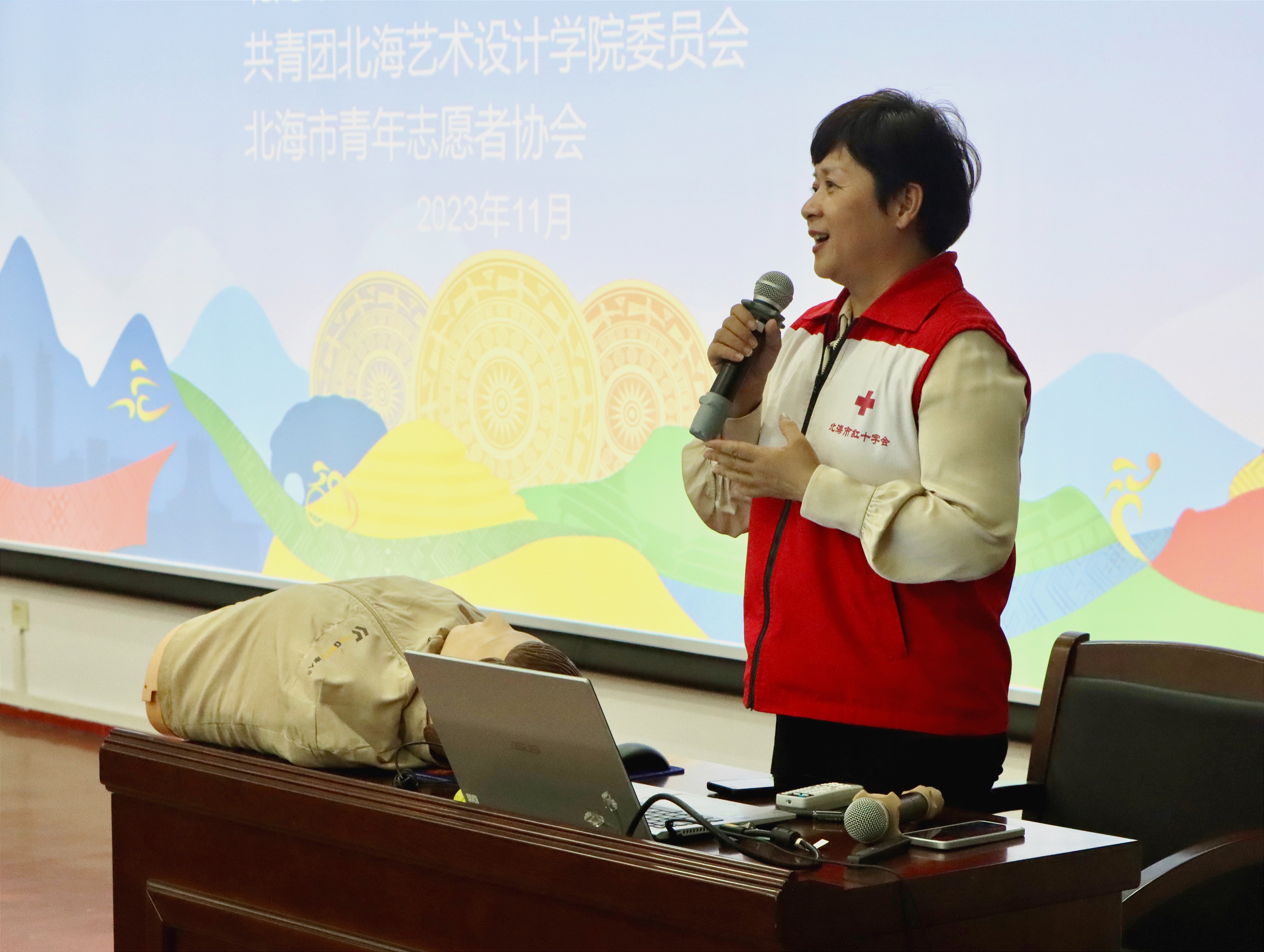 出征仪式结束后,为做好学青会校园大学组(男子)足球比赛志愿者服务工作,团市委、市旅游文体局、北海艺术设计学院精心部署和组织开展志愿者相关工作。针对服务岗位,出征仪式结束后应急救护知识、消防安全举措、志愿服务基础知识等方面的培训。