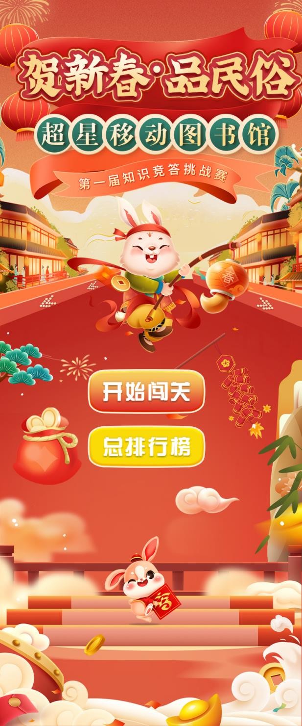 值此新春佳节之际,我馆特组织广大师生参加“贺新春  品民俗”超星移动图书馆知识竞答挑战赛,欢迎大家积极参与,让我们一起感受浓厚的新春佳节氛围吧!