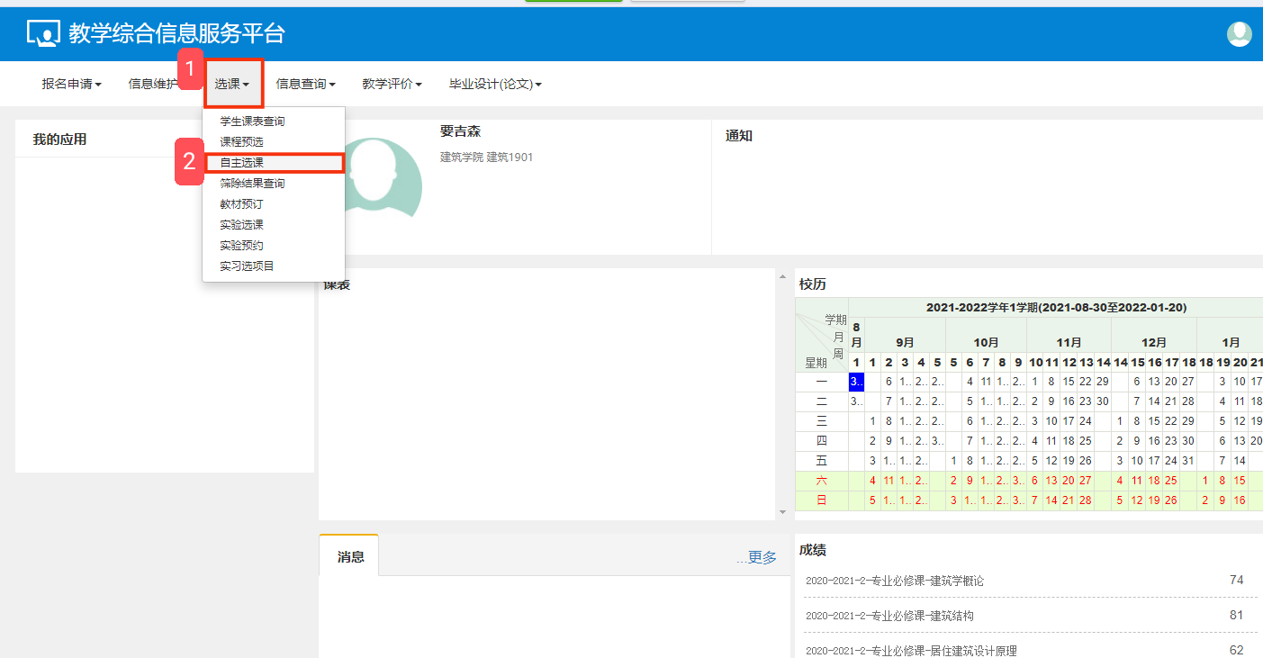 选课步骤:用浏览器打开教学综合信息服务平台网站https://jwglxt.sszss.com:8443/jwglxt/xtgl/login_slogin.html(也可用手机浏览器进入);输入用户名和密码登录后,依次点击“选课”→ “自主选课” → “年级” → “课程归属” → “查询”→“选课”。忘记密码的同学,请提前联系本人所属的二级学院综合办老师修改。