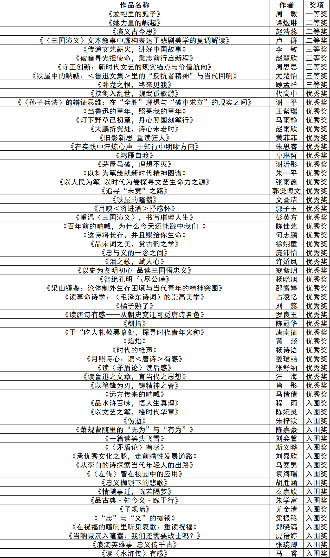 为引导学生研读经典著作,提升文字鉴赏能力,涵养热爱阅读的校园风尚,文学院于2025年10月举办了第一届“哲学杯”读后感大赛。本次大赛共征集到二百余份参赛作品,最终有62份作品入围,经过评审团严格筛选,评选出一等奖1名、二等奖3名、三等奖5名、优秀奖35名、入围奖18名。获奖名单如下: