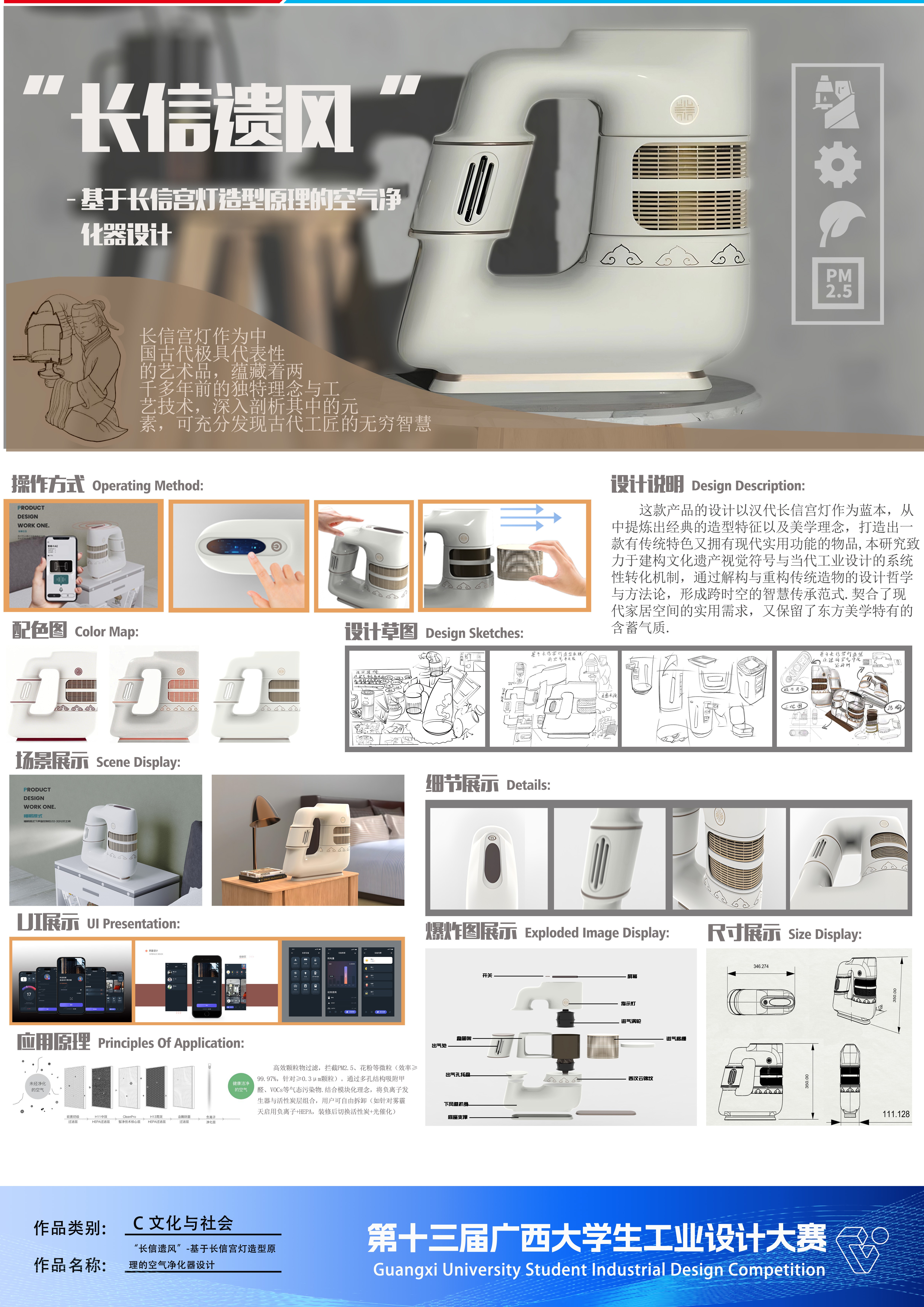 作品名称:长信遗风”-基于长信宫灯造型原理的空气净化器设计    作者:韦骏尧