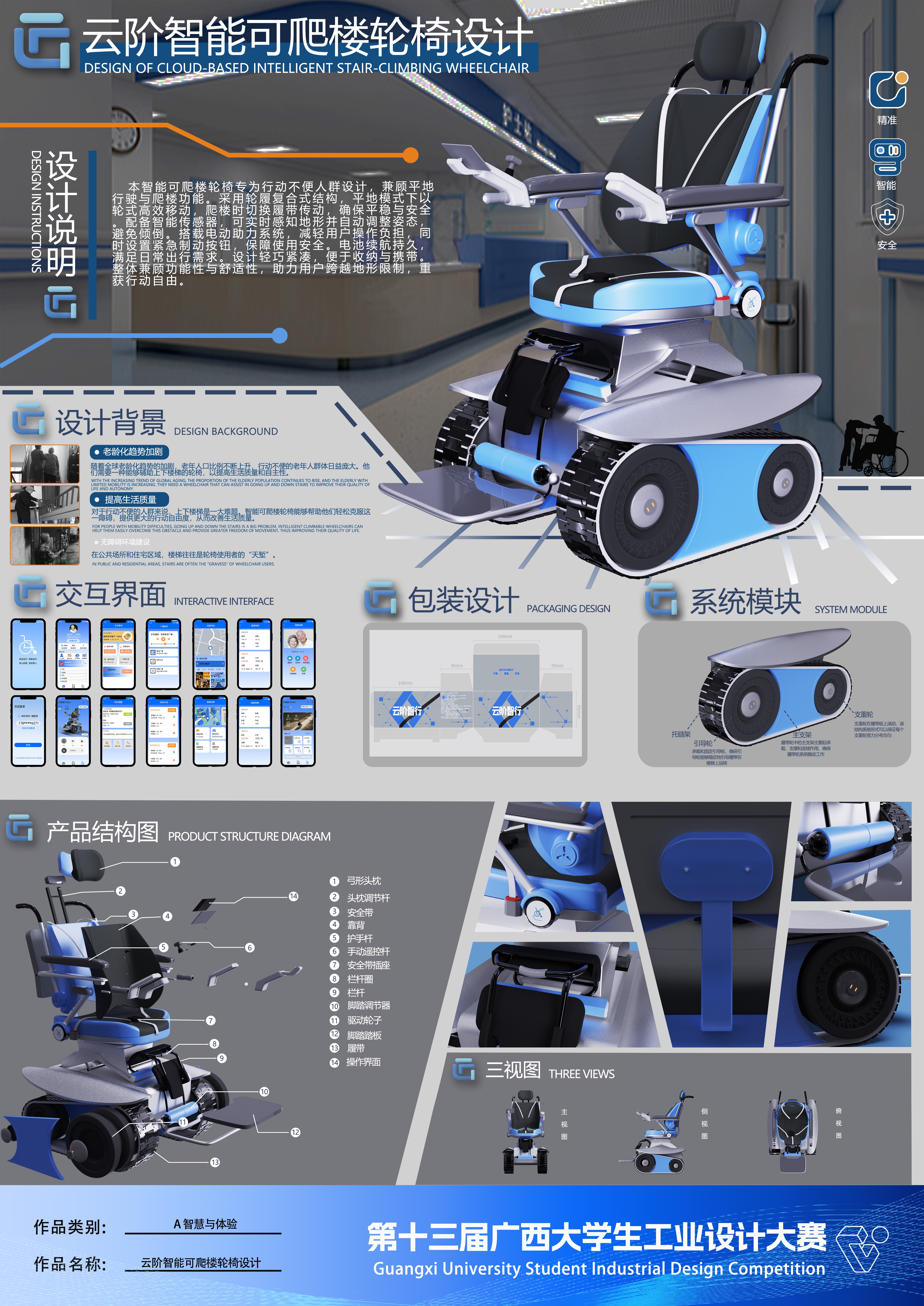 作品名称:云阶智能可爬楼轮椅设计    作者:江沛