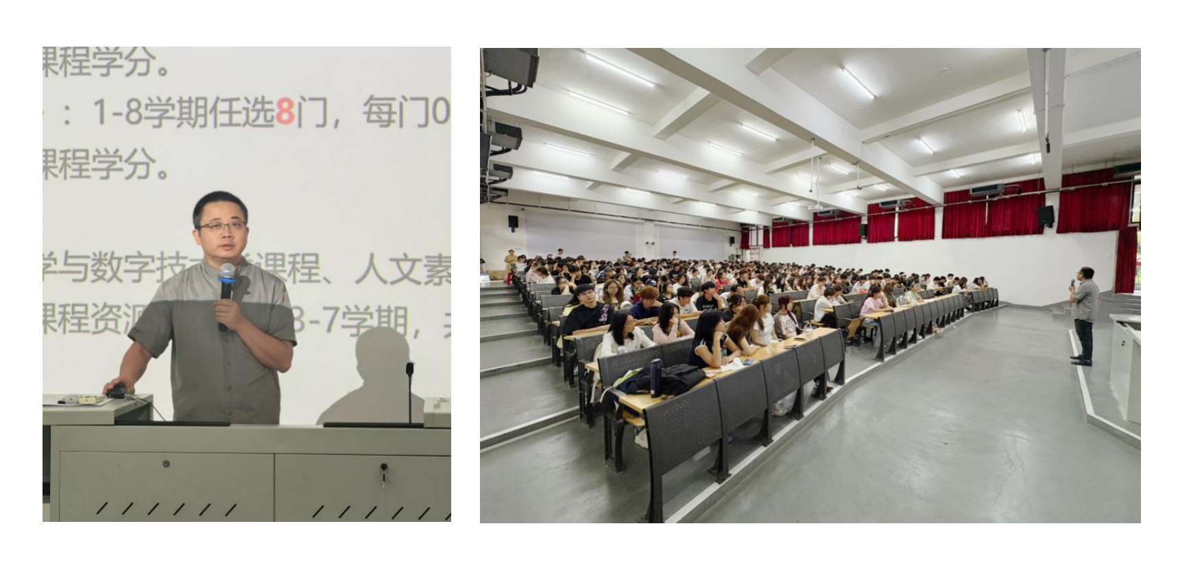 龚为院长从学院概况,专业介绍,人才培养方案,教学管理规范,毕业及学位要求,学业规划等方面为同学们进行了全面解读,旨在帮助新生快速了解专业情况、明确学业要求,为大学学习生活奠定基础。