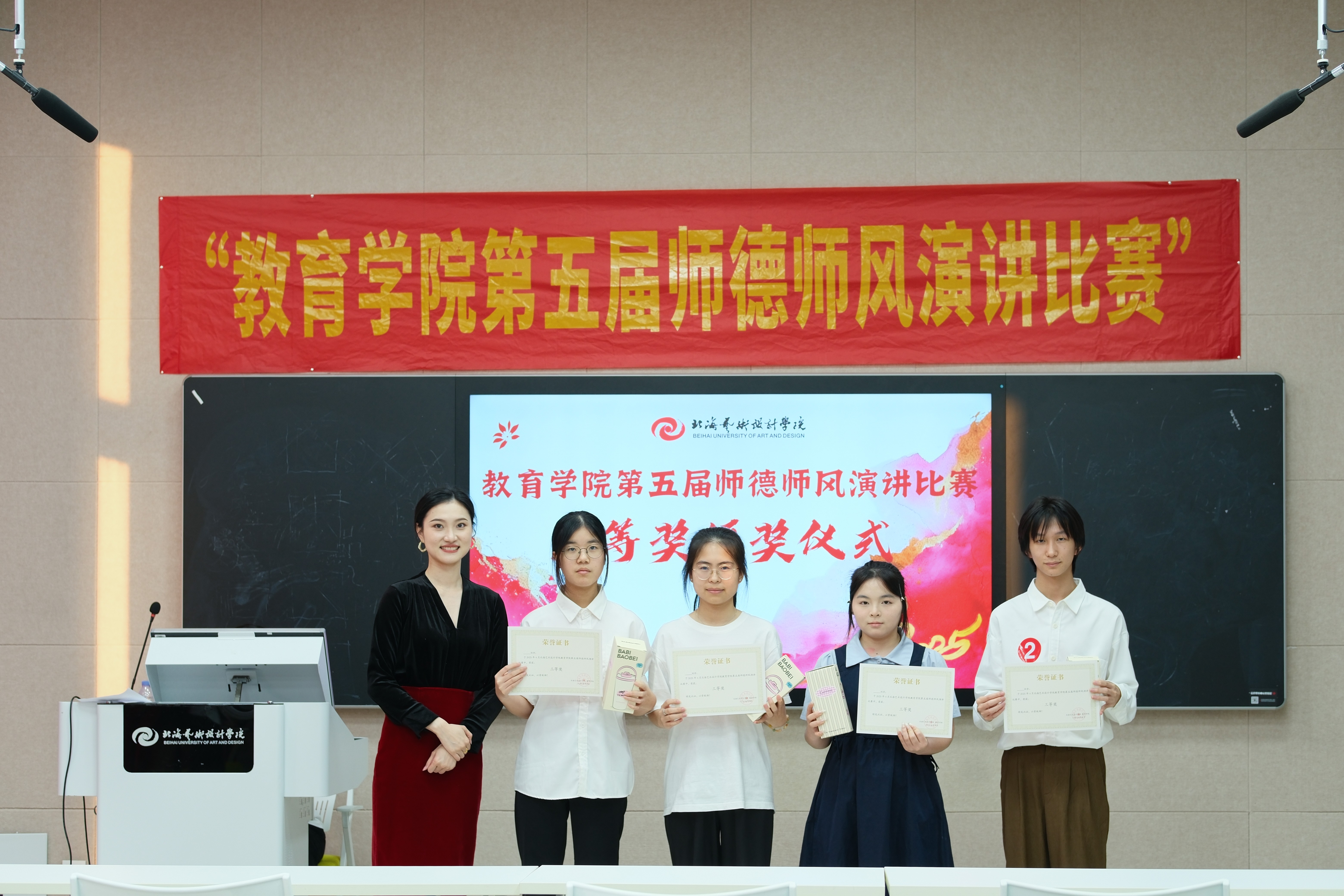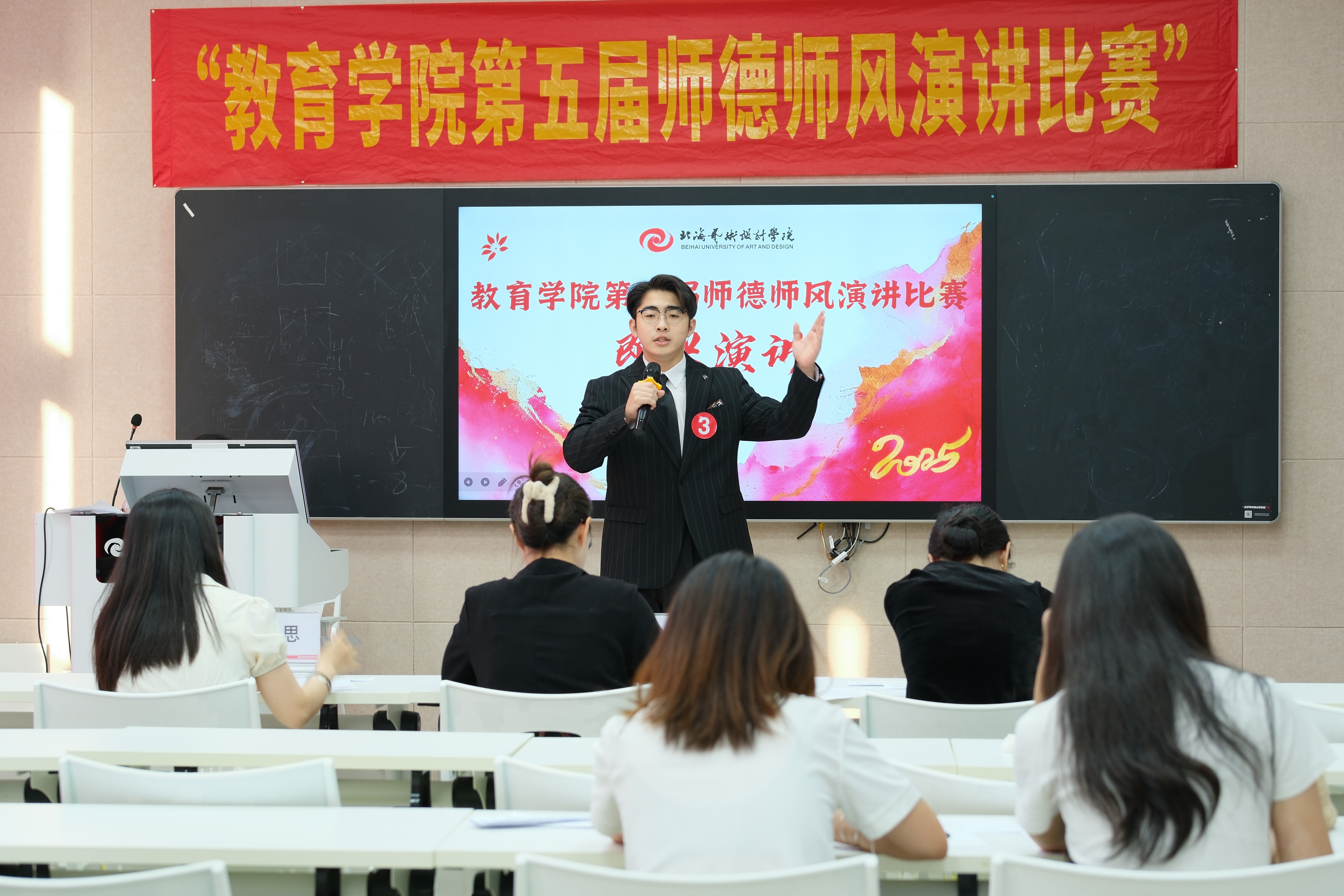 此次比赛不仅是一次师德风采的集中展示,更是一场精神力量的传递与共鸣,激励着教育学院全院师生将教育家精神融入日常教学与学习中,以实际行动为教育强国建设添砖加瓦,同时为学院师德师风建设注入了更富活力的时代动能。
