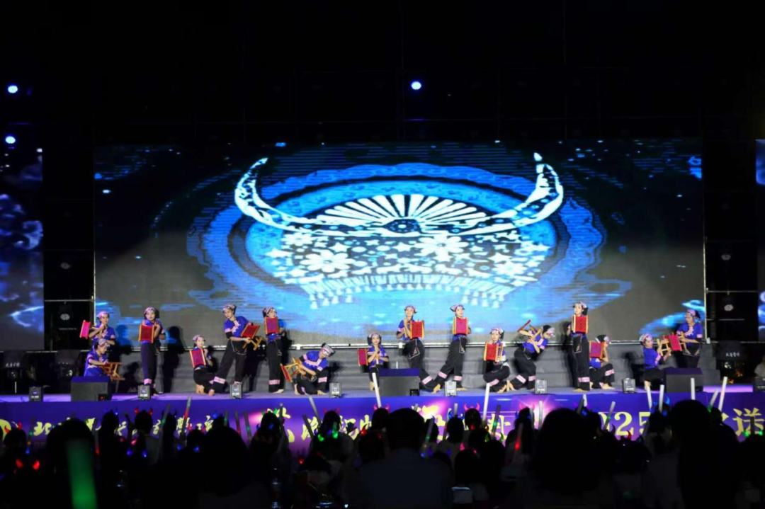 舞蹈节目《锦绣十八洞》中,舞者们凭借扎实的舞蹈功底和精湛的技艺,把灵动的舞姿与优美的旋律完美融合,伴随着头上银饰清脆的叮铃声,每一个动作都流畅自然,展现出独特的艺术魅力。