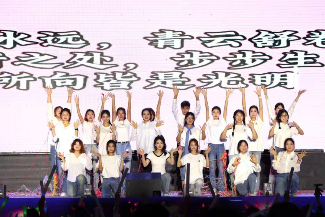 合唱节目《蜗牛》 夜色渐浓,晚会落下帷幕,但真挚的情谊与美好的瞬间,永远镌刻在每个人心中。愿学子们在新的征程上不忘初心,乘风破浪,一路繁花。祝2022级学子们赴京顺利!(汪乐希、高泽娅/摄)