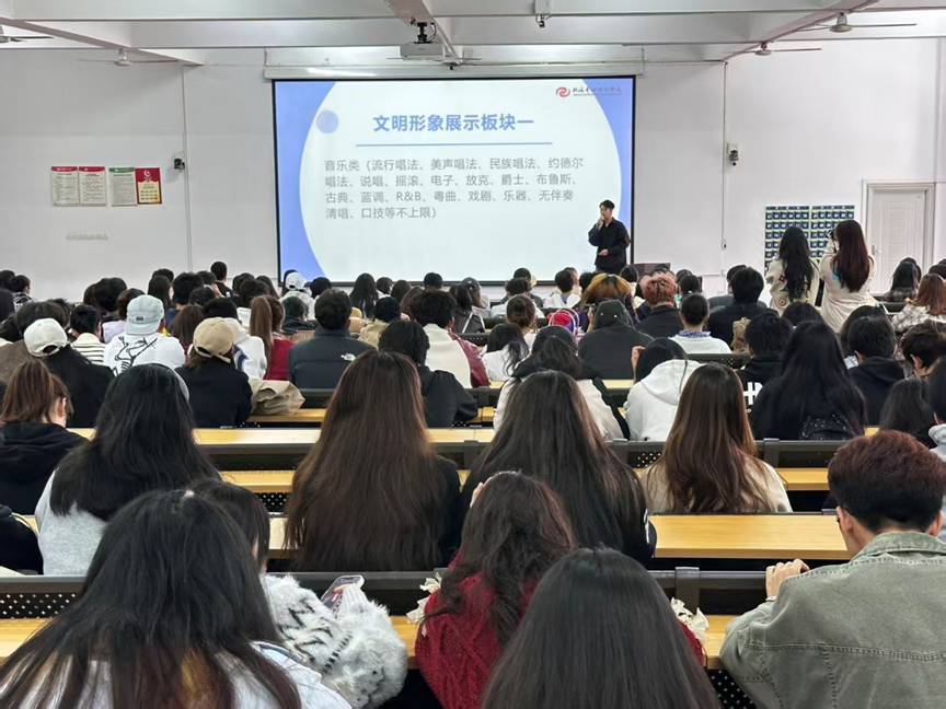 为了树立校园正气标杆,引领见贤思齐的校园风尚,营造和谐积极的校园文化氛围。10月23日,我校文明形象大使活动动员大会在伦理楼107顺利开展。