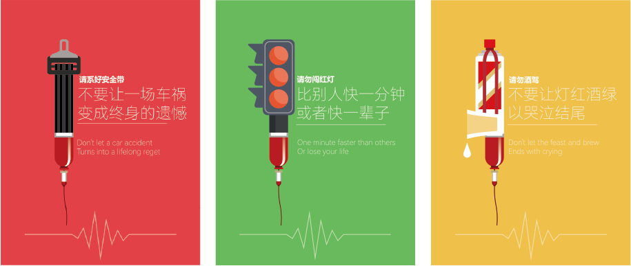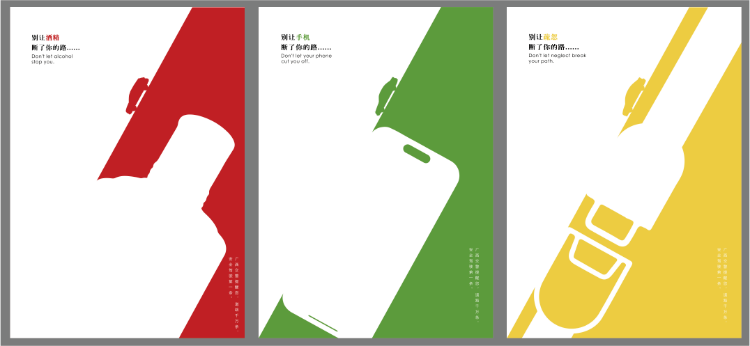 海报类:优秀奖 《交通安全系列作品-别让酒精、手机、不系安全带断了你的路》