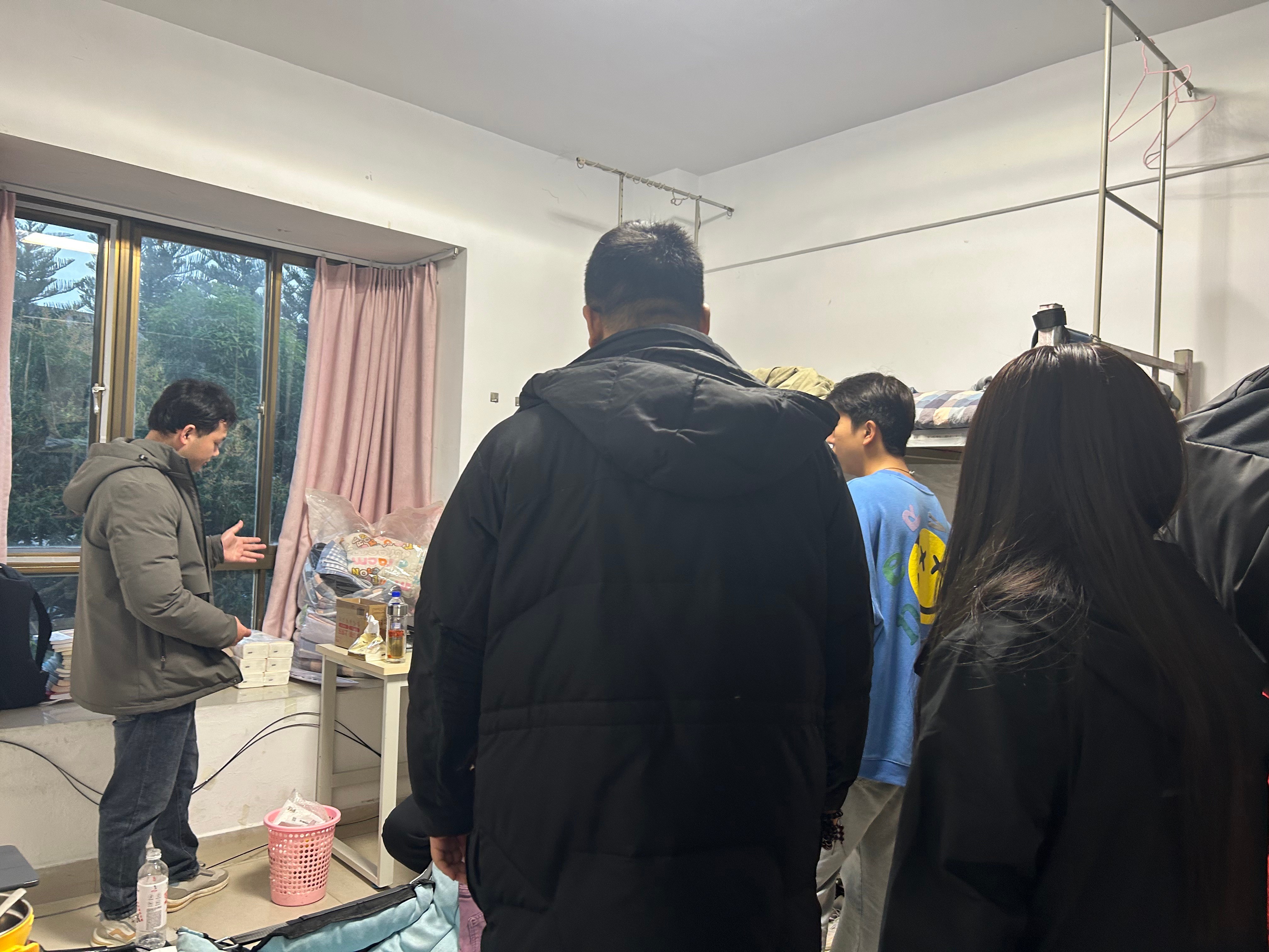 走访过程中,老师们首先仔细检查了各个宿舍的卫生状况,叮嘱学生做好每日卫生清洁工作,保持宿舍干净整洁,鼓励同学们相互包容、相互理解,遇到问题及时沟通解决,共同打造和谐温馨的宿舍家园。此外,还对宿舍进行了全面的消防隐患和安全隐患排查,对于发现的诸如个别宿舍灯坏了等问题,当场提醒同学们及时报修后勤部门,并要求相关部门尽快处理,确保同学们的生活学习不受影响。