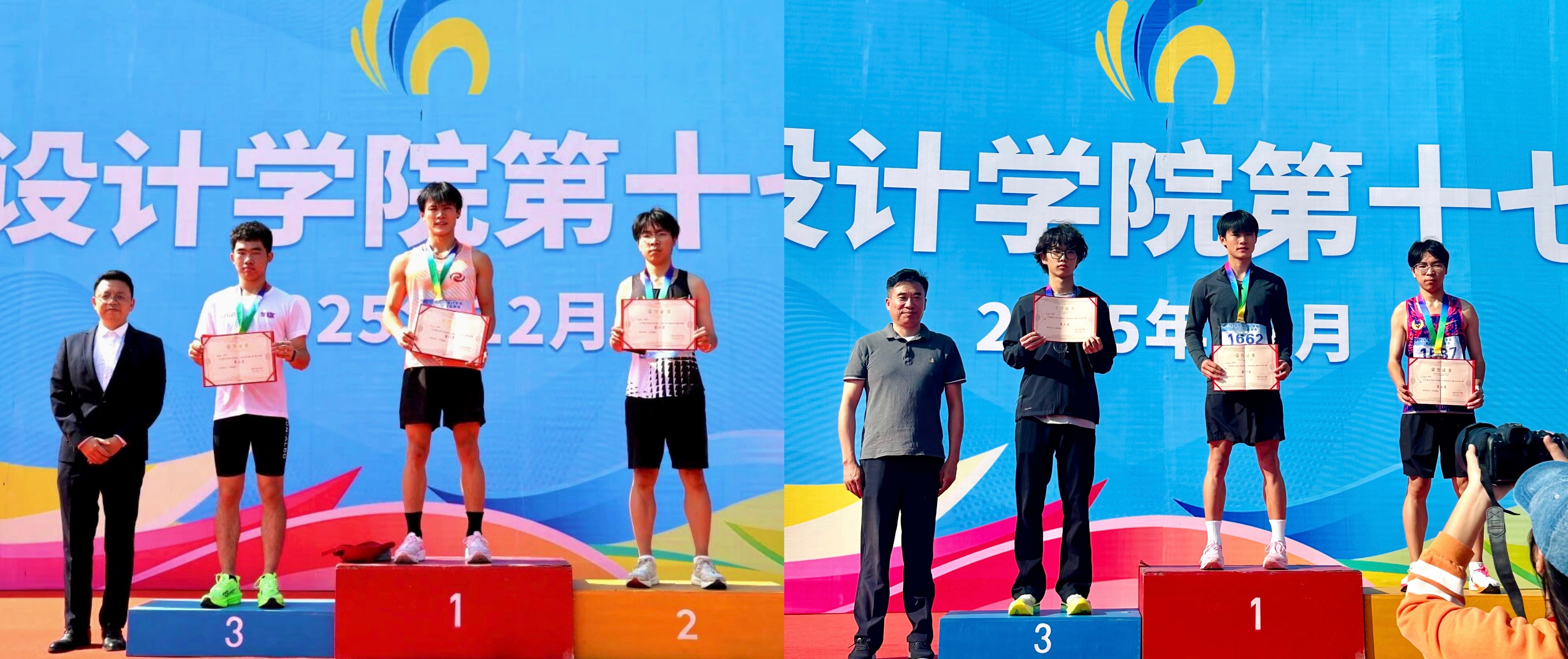 服饰2303班的吴江山同学表现尤为亮眼,他在男子800米决赛中以2分12秒26的成绩摘得第一名,又在男子1500米项目里跑出4分45秒58的佳绩,再度将第一名收入囊中。